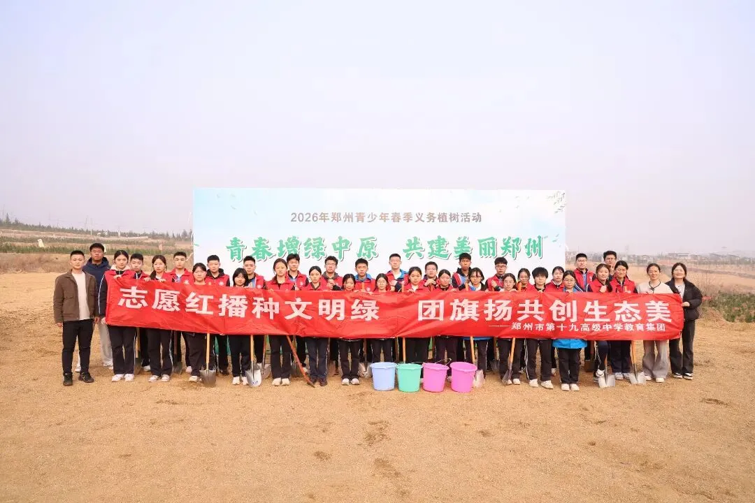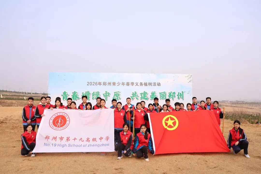 志愿红播种文明绿 团旗扬共建生态美——郑州市第十九高级中学开展植树节主题志愿服务活动