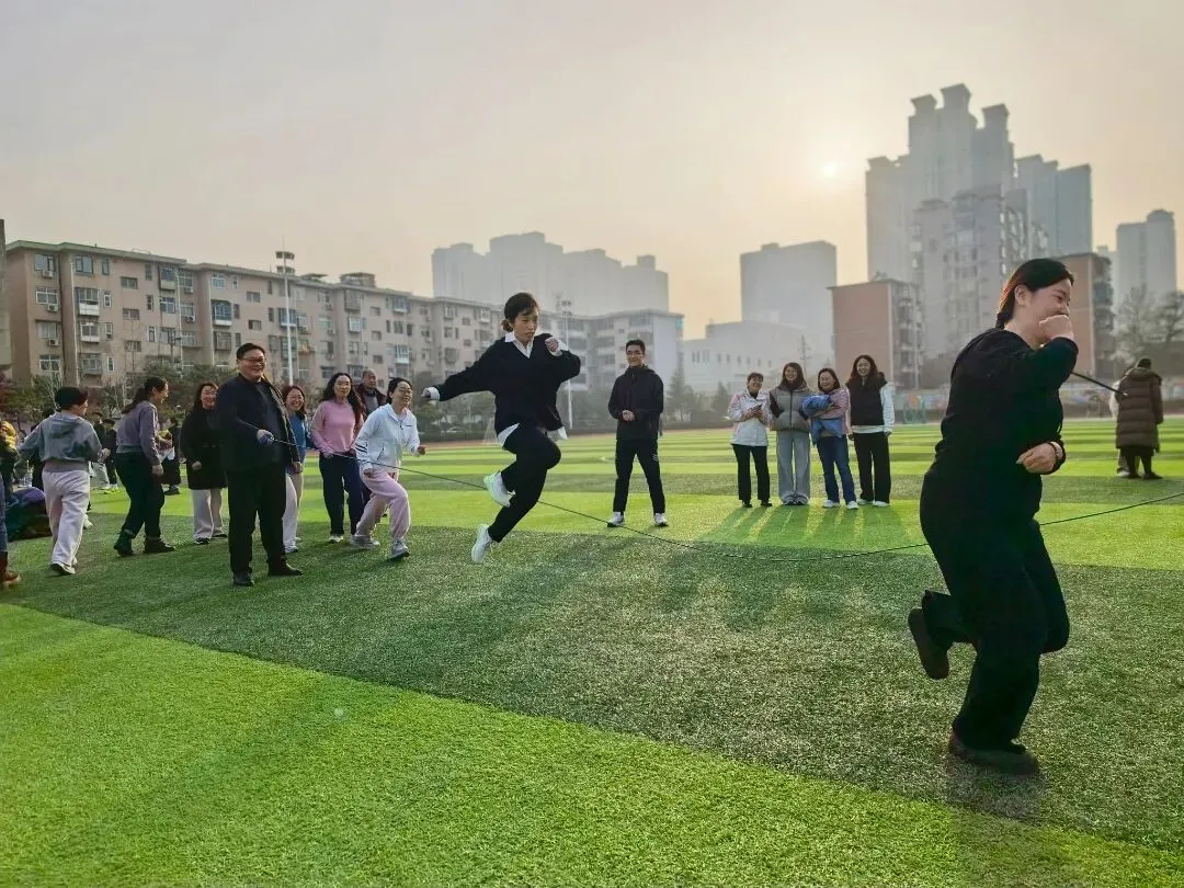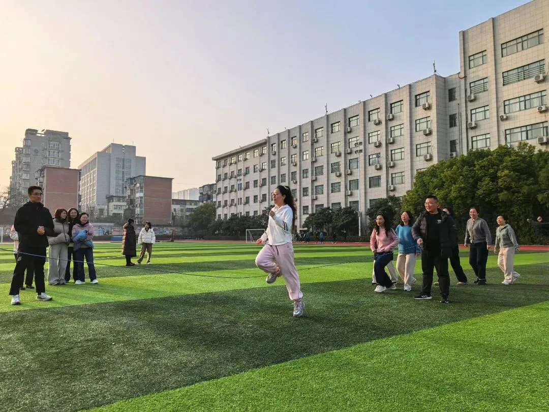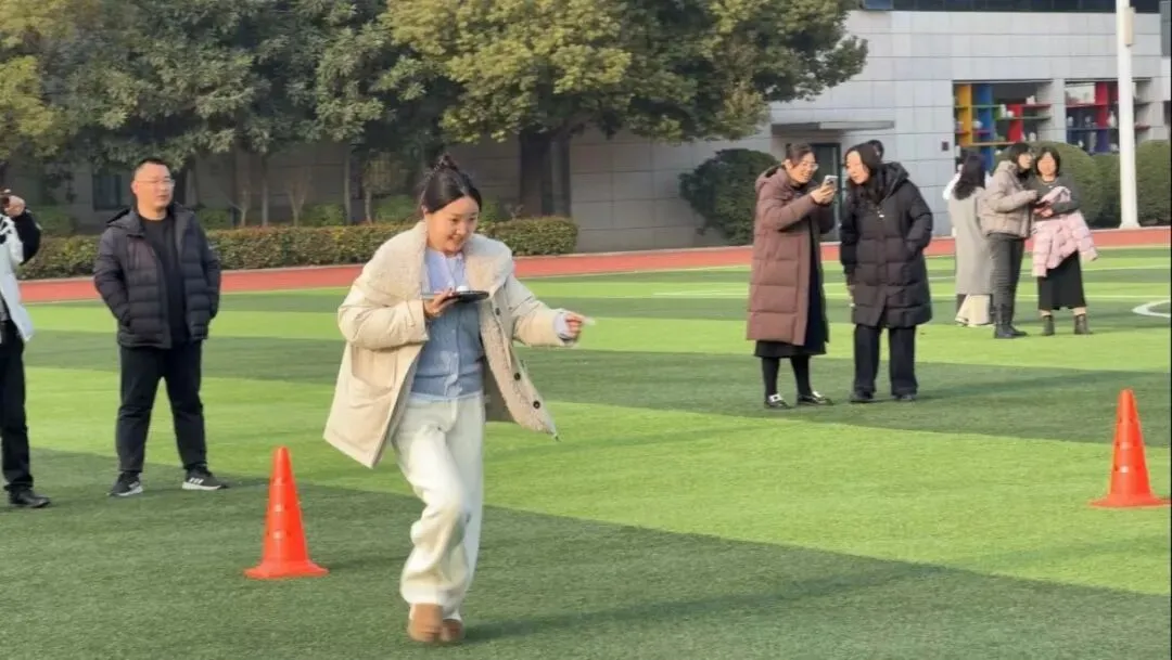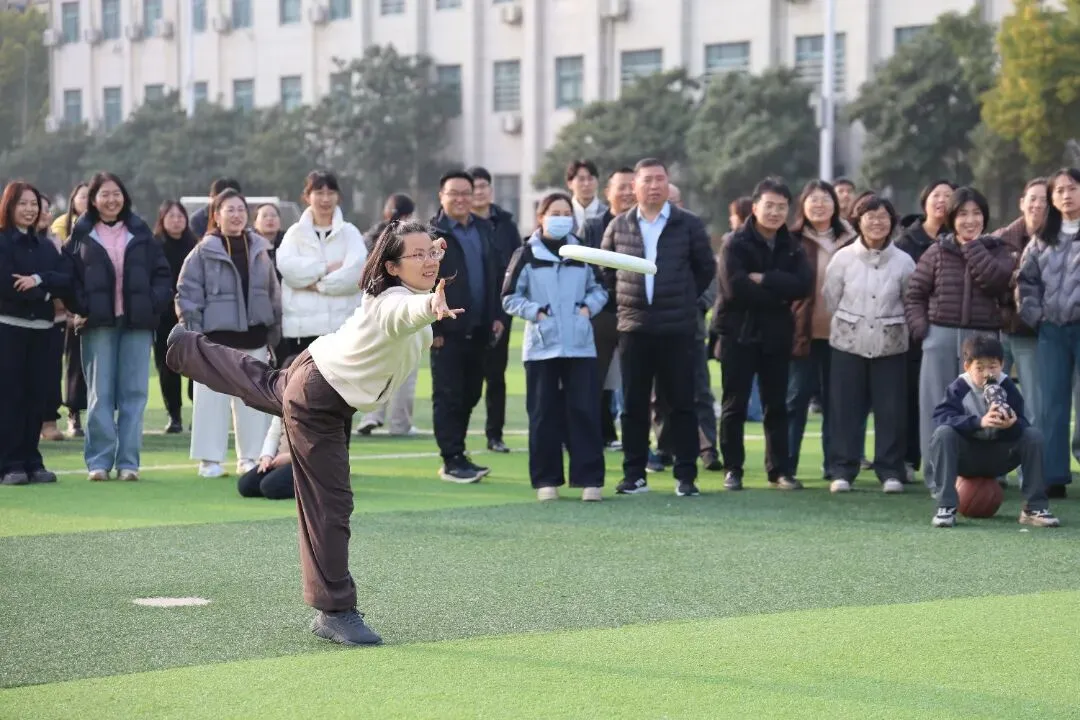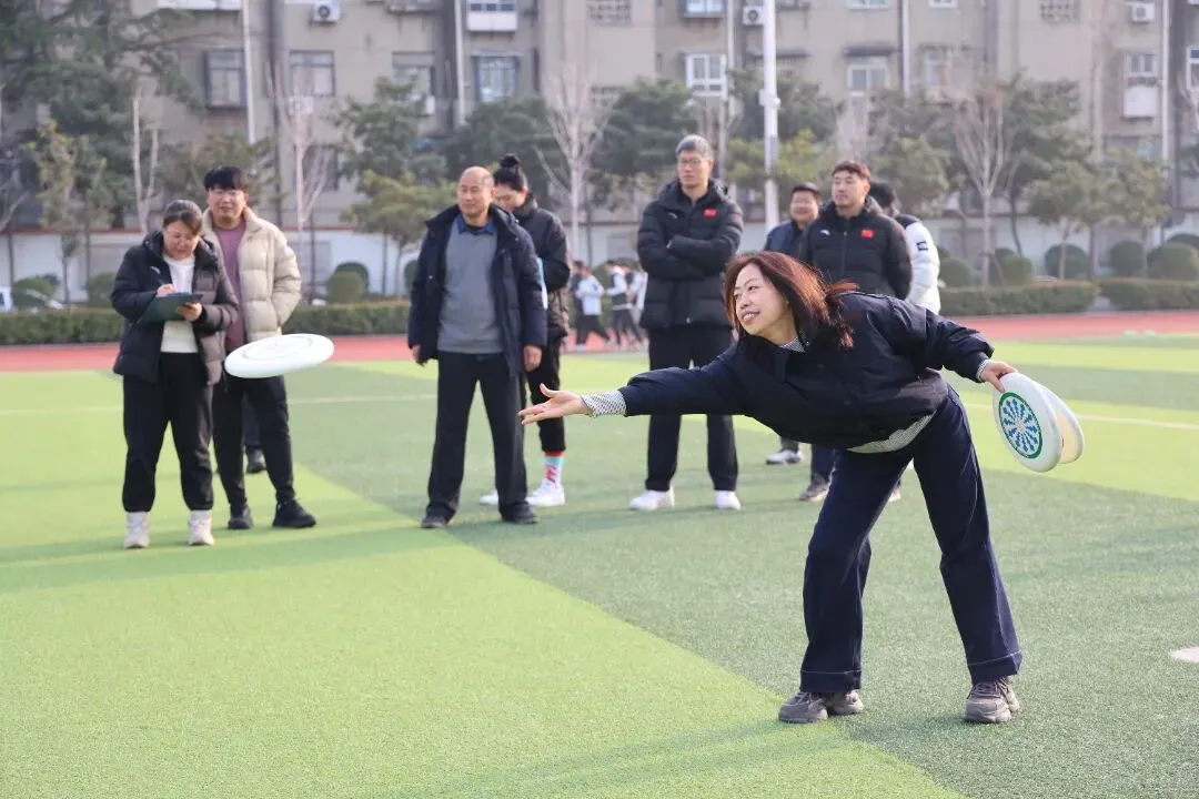 飞盘打准环节,参赛教师凝神瞄准、轻巧投掷,飞盘在空中划出优美弧线,每一次精准投中都引来现场阵阵掌声。端乒乓球接力赛中,老师们手持球拍、稳托小球,步伐轻快、有序交接,比拼速度更考验耐心与平衡,赛场内外欢声笑语不断。4分钟跳大绳将现场气氛推向高潮,摇绳老师节奏均匀,参赛队员依次跃入、连贯跳跃,配合默契、充分展现出教职工昂扬向上的精神风貌与团结协作的团队经过热烈比拼,学校根据各队积分评选出特等奖1名、一等奖1名、二等奖2名。