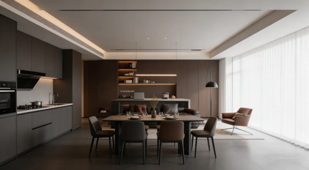 客餐厅作为企业圈层的私享聚场,慢煮清茶闲谈行业先机,比对外商业茶楼更具专属感与尊崇感。若需商务接待,可将茶室与餐客厅联动打通,搭配定制茶席与轻奢水吧,构建出“商务洽谈-休闲接待-圈层社交”无缝衔接的复合场域,不动声色间彰显企业的格调与实力。