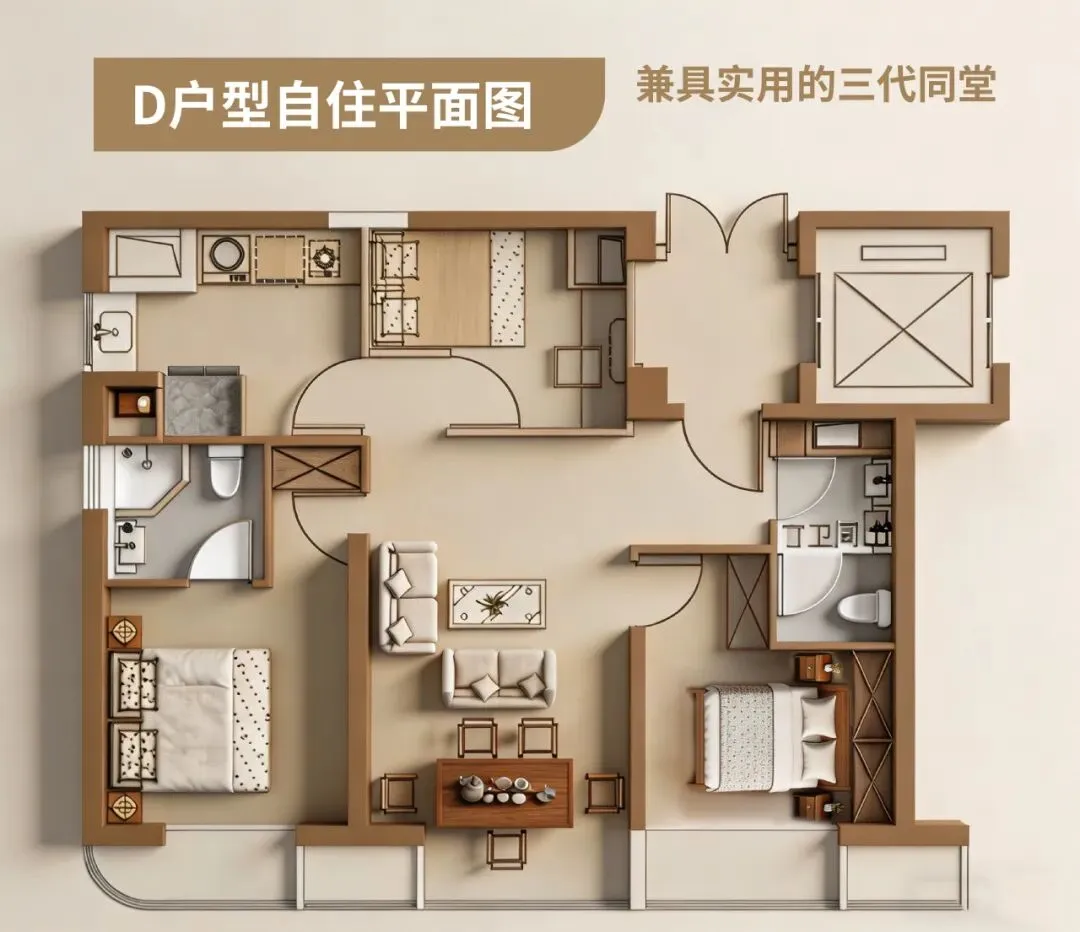 无论是需要南向阳光儿童房与烟火厨房的三口之家,还是追求独立卫浴与灵活客房的三代同堂,都能在这里找到最适配的落脚点。