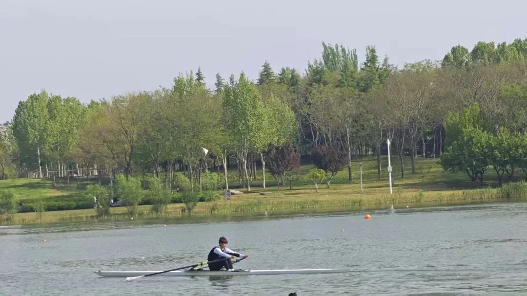 郑州龙子湖公园的春天,直接把「治愈感」拉满了!沿着湖岸的步道慢悠悠晃悠,风里都裹着青草和花香。蓝白相间的护栏边,木质长椅正等着歇脚的人,抬头就撞见水面上赛艇少年们奋力划桨的身影,桨叶划破清波,连风都跟着充满了活力。
