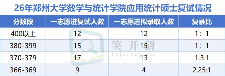 郑州大学数学与统计学院应用统计一志愿合格考生复试分数线为366/60/80