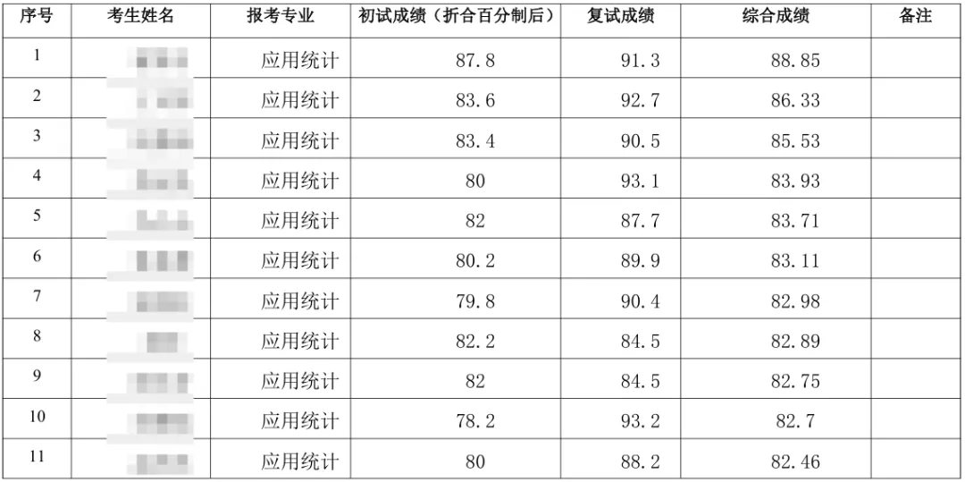 ①郑州大学数学与统计学院应用统计专硕一志愿进复试53人,拟录取44人