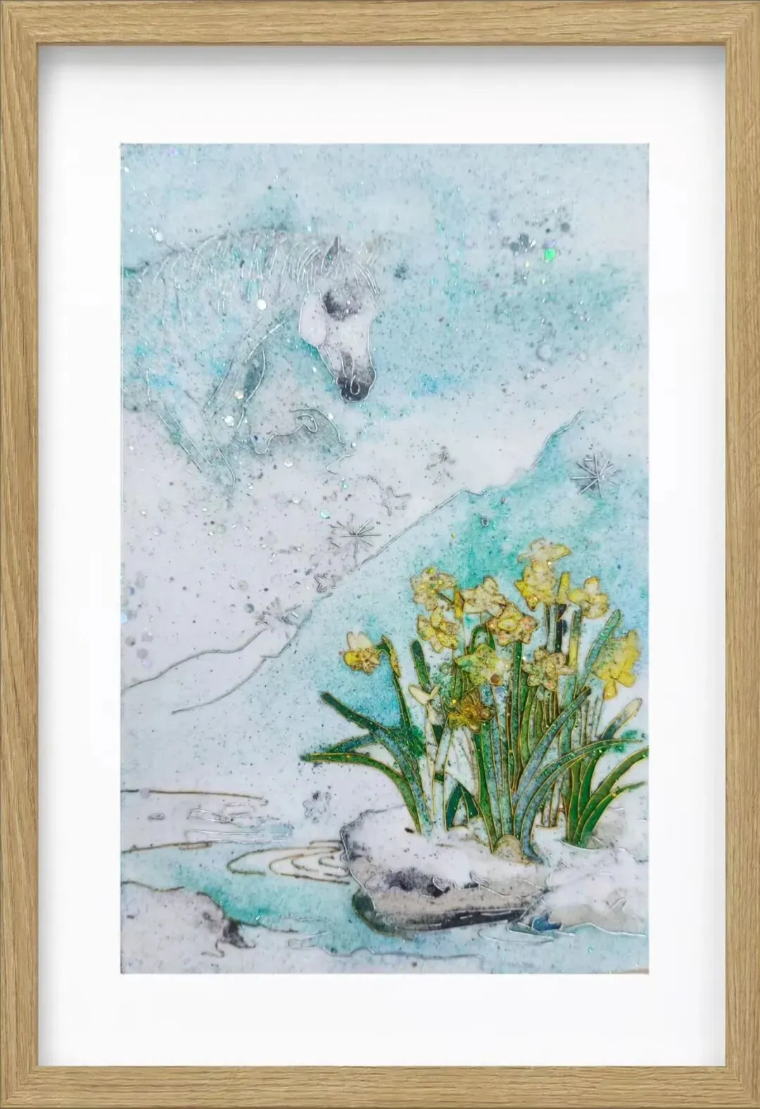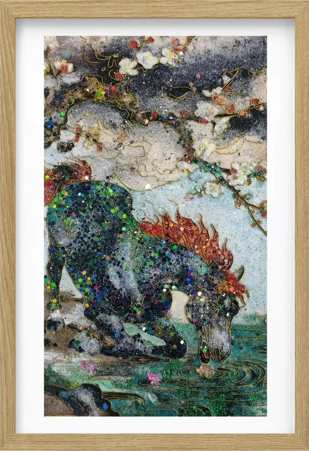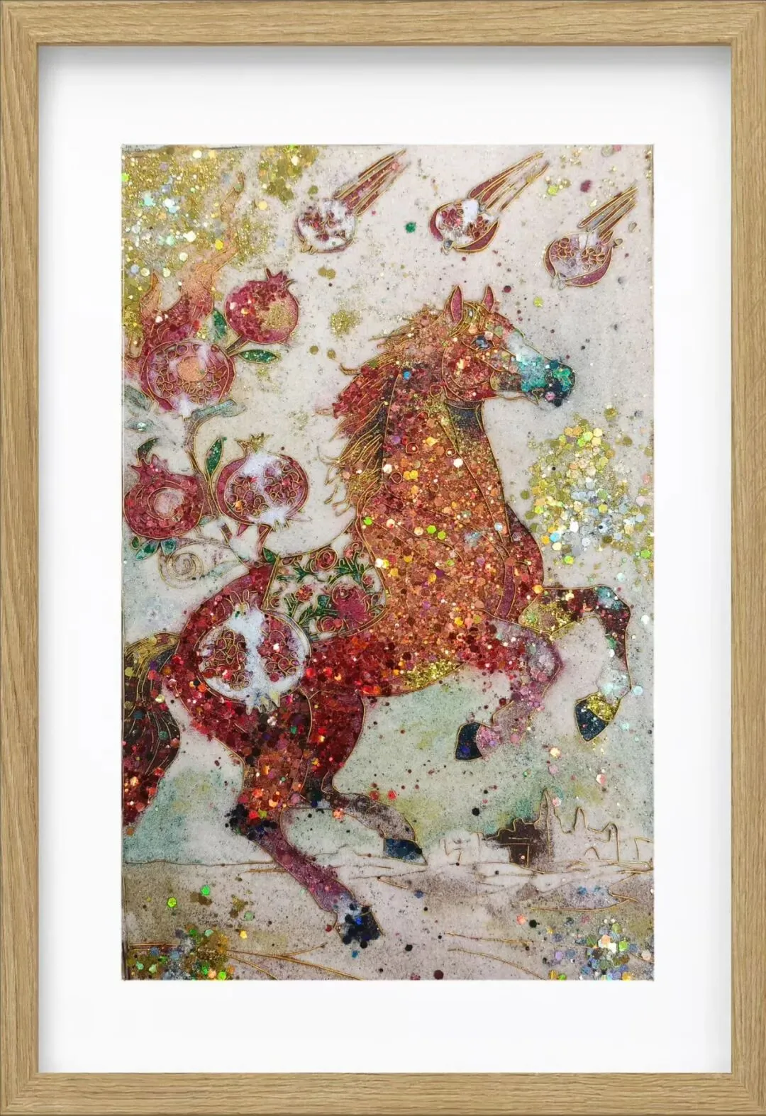 用岩彩浓淡晕染名马神骏。