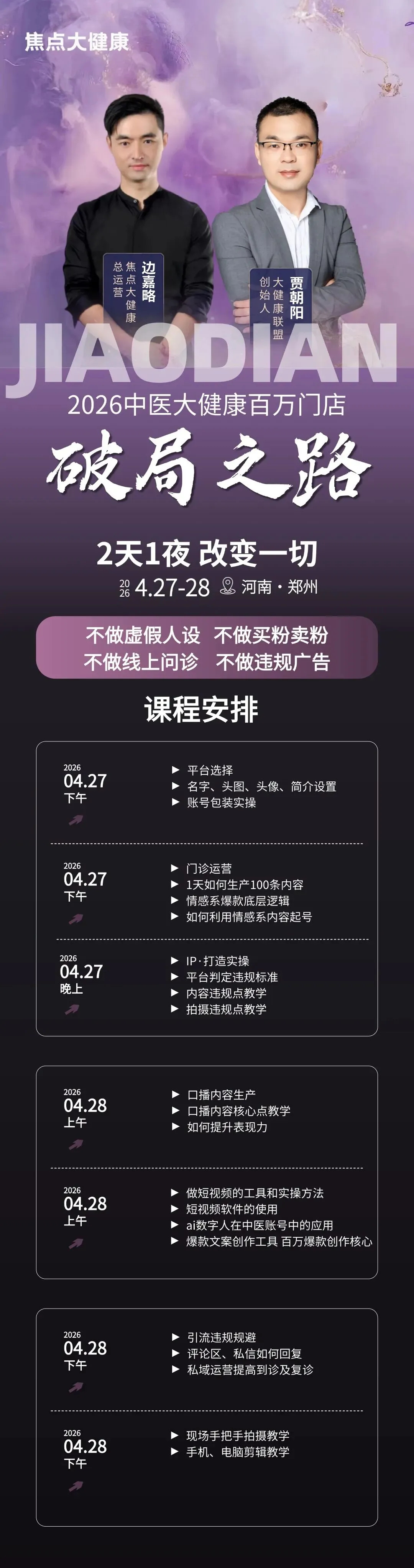 别慌!焦点大健康 2026 中医大健康百万门店・破局之路 郑州站,4 月 27-28 日,2 天 1 夜线下实操课,帮你彻底解决中医馆线上获客的所有难题!