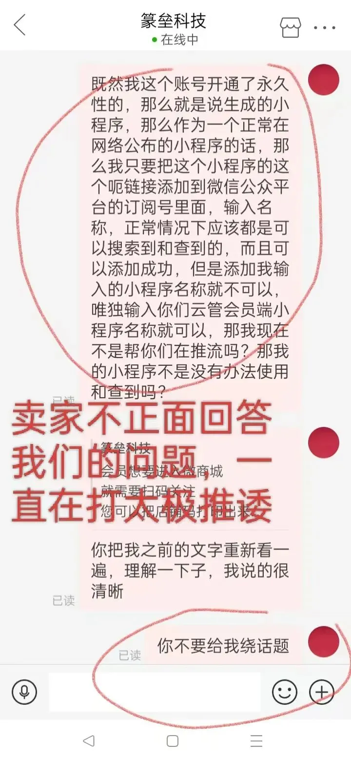 投诉对象:拼多多平台店铺【科技】;投诉事由:该商家销售与宣传不符的缺陷软件,售后恶意推诿、拒绝解决问题,严重侵害消费者合法权益。本人现就此次消费纠纷,正式发起投诉,要求商家全额退款、承担全部责任,恳请相关方依规处置,保障消费者正常维权权利。 拼多多购软遇坑:功能失效、售后被拒、维权无门?谁是商家背后保护伞 ⚠️ 消费惊魂:软件功能失灵,商家推诿平台包庇 2026年4月7日15:01:26,消费者在拼多多平台店铺名称是:篆垒科技 ,我们根据公布的营业执照获悉:该店铺名称营业执照是【郑州篆垒信息科技有限公司】,企业注册号:91410105MAG0EH7899 住所:河南省郑州市金水区博颂路37号11-1号楼2层 201号C区197室 法定代表人:朱永蕾 买家在拼多多店铺 篆垒科技 购买一款会员管理软件,本想依托软件正常使用,却在2026年10月9日使用时遭遇致命功能缺陷——会员账户消费时,系统未按宣传自动核算折扣价,反而全额扣除原价,完全违背核心使用价值。消费者第一时间反馈问题,还提交了按官方视频教程操作却找不到对应功能的故障视频,商家却始终回避、拒不处理,以各种理由推诿责任。更令人愤慨的是,10月10日消费者向拼多多平台投诉维权,平台未核查订单详情、聊天记录及故障证据,无任何理由直接驳回诉求,直接擅自关闭售后通道,彻底阻断消费者线上维权路径。从商家虚假宣传、产品质量不合格,到平台漠视权益、违规关闭售后,这场消费纠纷步步踩破法律底线,消费者合法权益被肆意侵害。 核心违法:商家三大违约行为,彻底丧失履约诚信 商家作为软件销售方,其行为已构成多重违法违约,需承担全部责任。其一,**产品功能与宣传严重不符,构成根本违约**。商家通过视频、详情有介绍,,软件正常使用设置的话正常的功能性软件支持会员分级折扣自动结算,消费者正是基于该核心功能购买,问题二:在贵宾设置类型上,有一项是独储值卡,但我们根据视频指定添加在操作时该软件和宣传指导视频不一致,功能性缺失无法操作。【视频多次发给卖家和软件官方工作人员】,但实际使用中核心功能完全失效,且存在官方教程指引功能缺失的设计缺陷,导致合同目的无法实现。依据《民法典》第五百七十七条、第六百一十条,因标的物质量不符合要求致使不能实现合同目的,买受人有权解除合同、要求退款,商家需承担违约责任。在发现软件功能缺陷后,消费者第一时间将问题反馈给商家,同时提交了亲自操作录制的视频证据,清晰展示了软件折扣不生效、功能缺失的真实情况,希望商家能够及时修复问题或办理退款。然而面对确凿的故障证据,商家不仅没有积极解决问题,反而以各种理由推诿搪塞,对消费者的合理诉求视而不见。无论是功能失效的核心问题,还是教程与实际操作不符的漏洞,商家均未给出任何正面回应,更未提出修复、更换、退款等解决方案,全程采取逃避态度。更不合理的是,商家单方面提出若要退款,消费者必须承担平台佣金费用,完全无视本次纠纷是因软件自身质量问题引发的事实。商家作为商品销售方,本应保证所售软件符合宣传功能、具备正常使用价值,但其漠视消费者权益、怠于履行售后责任的行为,已经严重违背商业道德与法律规定,不仅损害了消费者的合法权益,更破坏了网络交易的诚信基础。消费者无任何过错,维权诉求于法有据 抵制电商侵权乱象,坚守法律维权底线