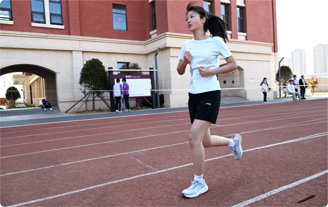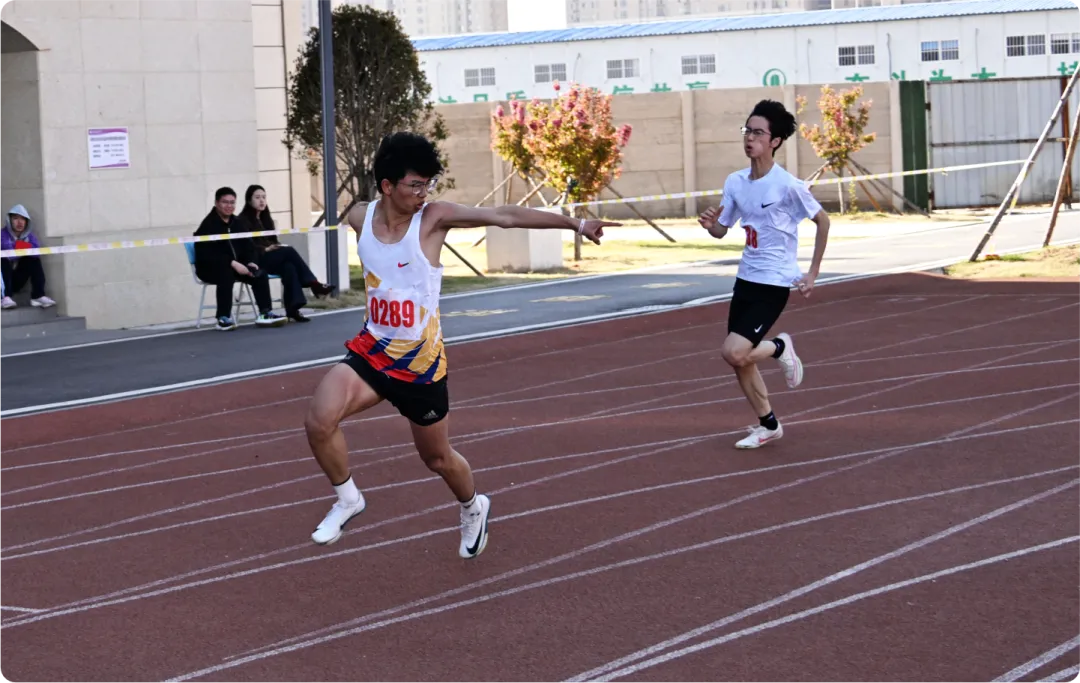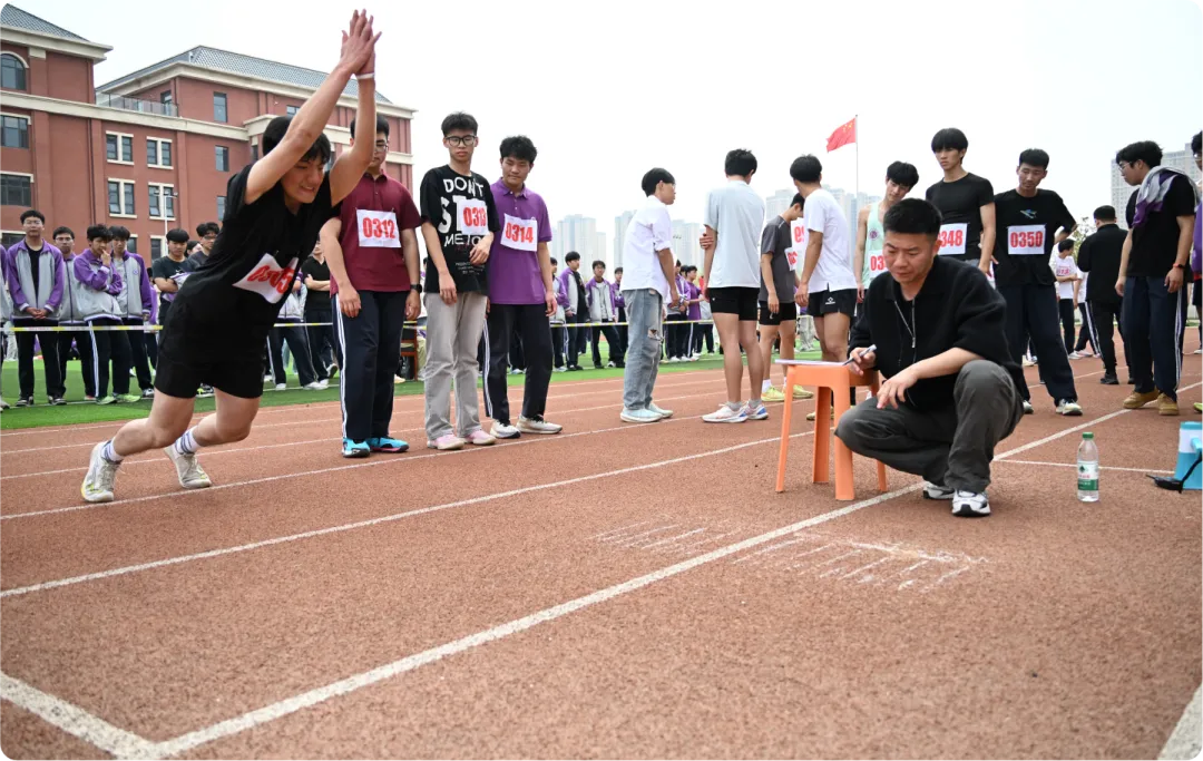 跑道上,发令枪响,健儿们如离弦之箭,用速度书写青春。跳高选手腾空跃过横杆,跳远健儿奋力一跃定格高光,每一次尝试都值得喝彩,每一次突破都是青春的荣耀。接力赛中,接力棒传递的是信任与默契,并肩作战的身影诠释着“团结就是力量,拼搏赢得荣光”!男子100米
