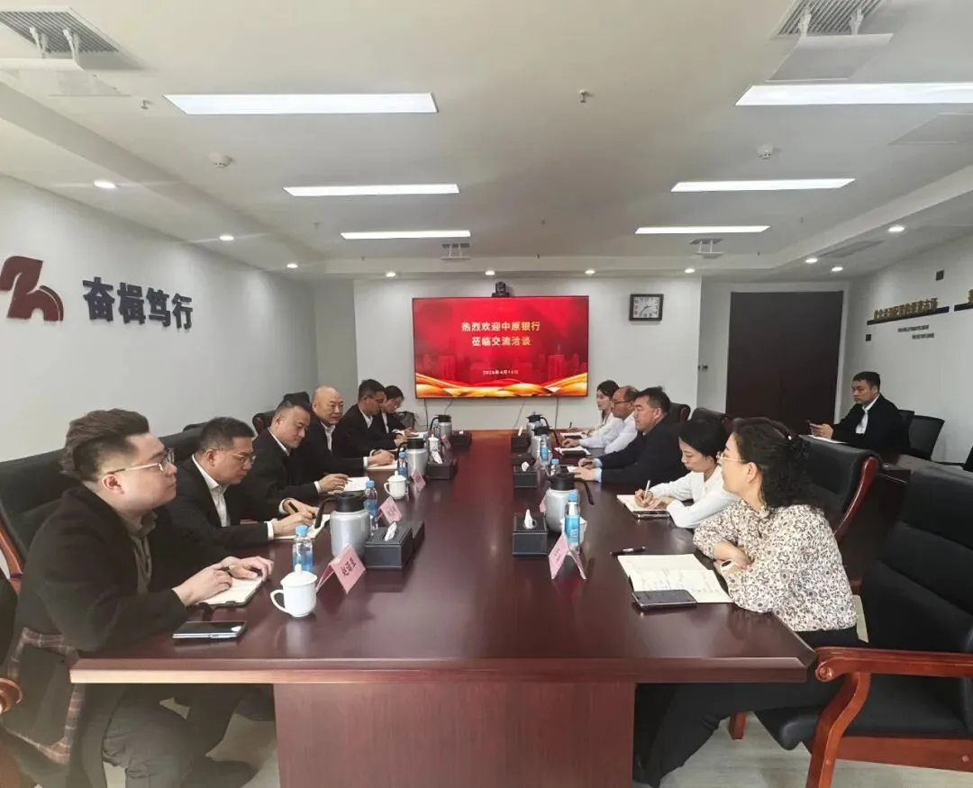 4月10日,中原银行郑州分行副行长杨国权一行到访河南交易集团,双方围绕存量资产盘活、财务系统信息化建设等进行交流。河南交易集团党委委员、副总经理王一风出席座谈。