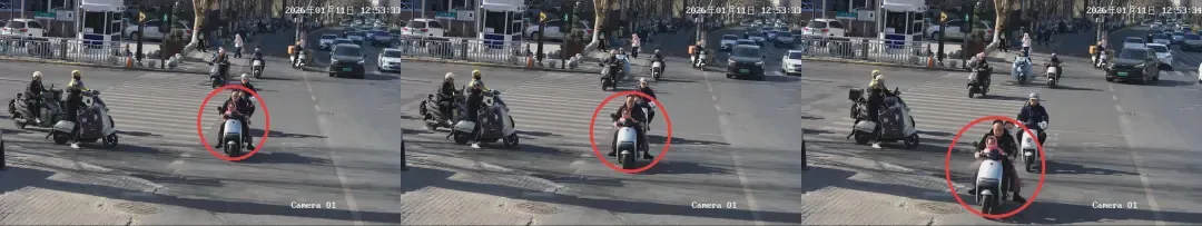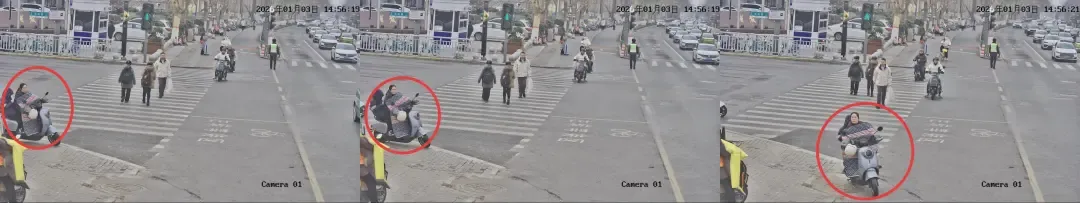 前端数据采集设备,24小时不间断自动识别电动车闯红灯、违法载人、不佩戴安全头盔等突出违法行为,抓拍画面清晰记录违法全过程。