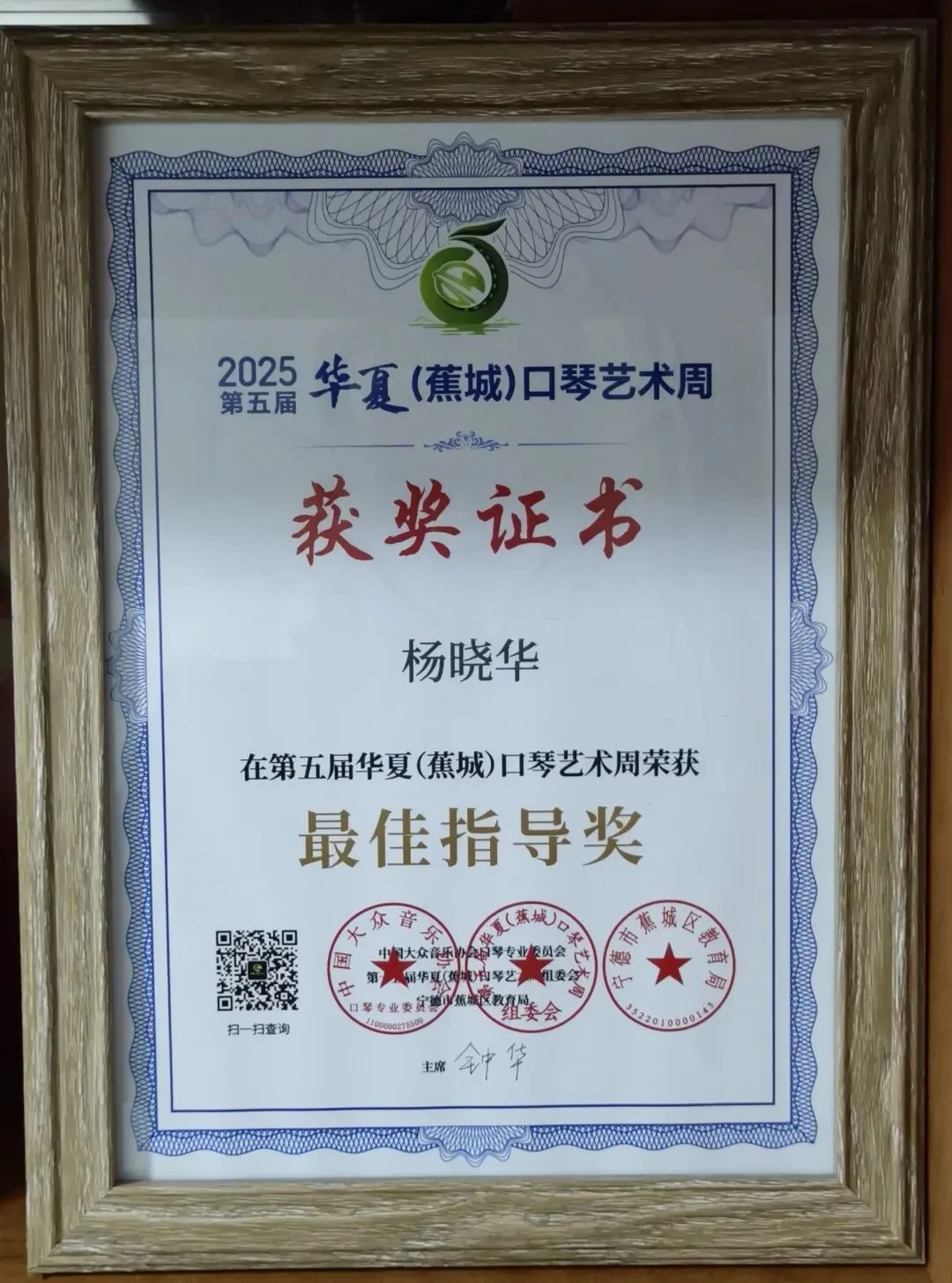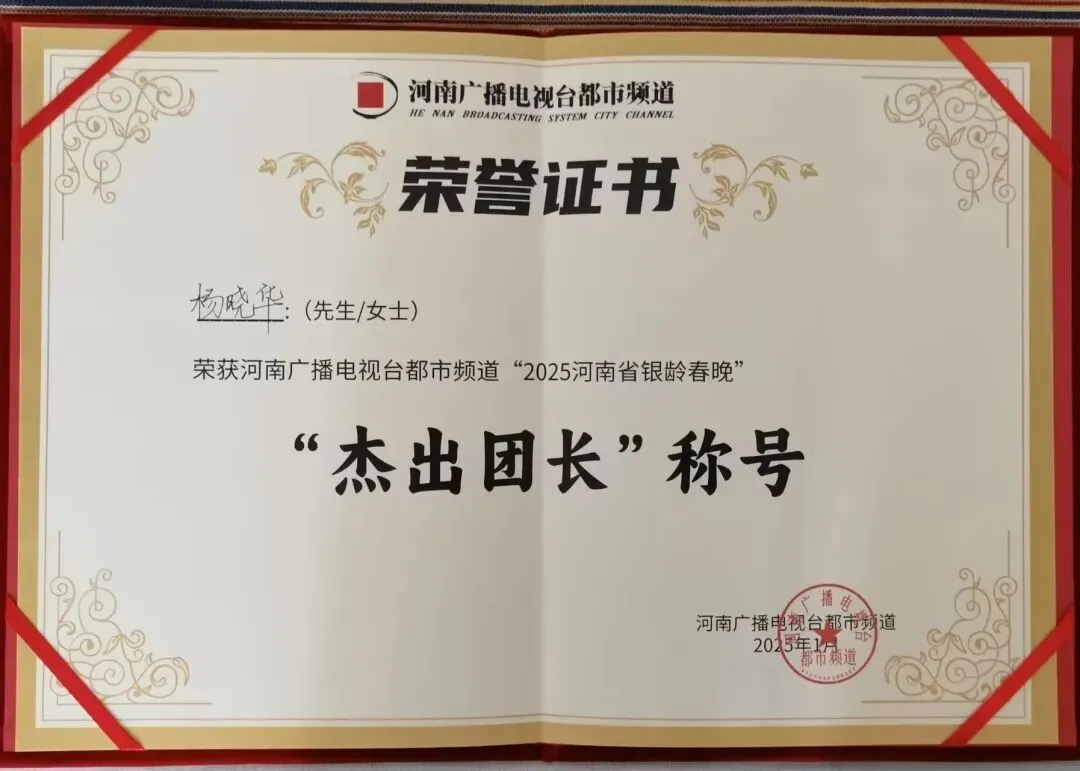 同时还积极组织百人参与6.21国际乐器演奏日等大型文化活动,助力乐器文化推广。团队受邀登上河南电视台首届银龄春晚的舞台,用精彩的表演收获了广泛好评,杨晓华老师荣获“杰出团长”称号。在2025年7月全国第五届华夏口琴艺术节和第三届白塔杯口琴比赛中,团队凭借出色的演奏实力一举斩获两个第一名、一个第二名、一个第三名和多项金奖的优异成绩,团长杨晓华出色的组织能力与精湛琴技,荣获“最佳指导奖”和“优秀组织奖”称号。