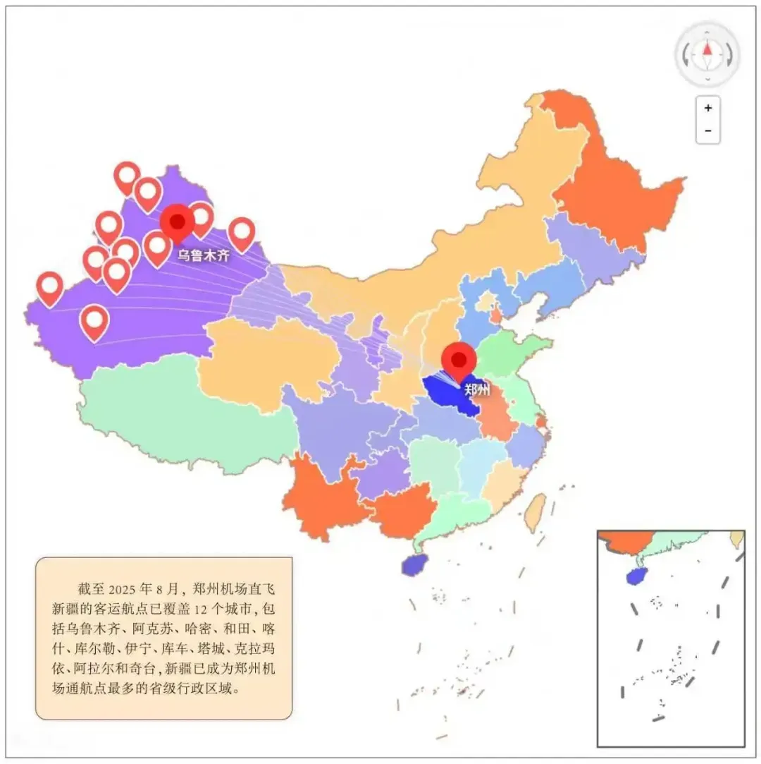 战略的共振在具体实践中得到体现。2025年,博乐—兰州—郑州航线正式通航,这条横跨西北与中原的“空中纽带”,连接起郑州航空港区与新疆“一带一路”核心区。