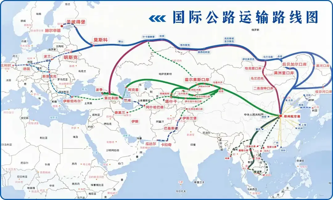 空路上,郑州机场与新疆12个航点的密集通航,促进了人流、物流、信息流的高效流动;陆路上,豫新省际班列与中欧班列的无缝衔接,形成了贯穿东西的国际物流大通道;网上丝路则通过跨境电商连接全球市场;TIR公路运输作为灵活补充,经由新疆口岸节点,为跨境电商货物与高附加值产品提供了快速出海的陆路新选择,提升了跨境贸易的便利化水平。