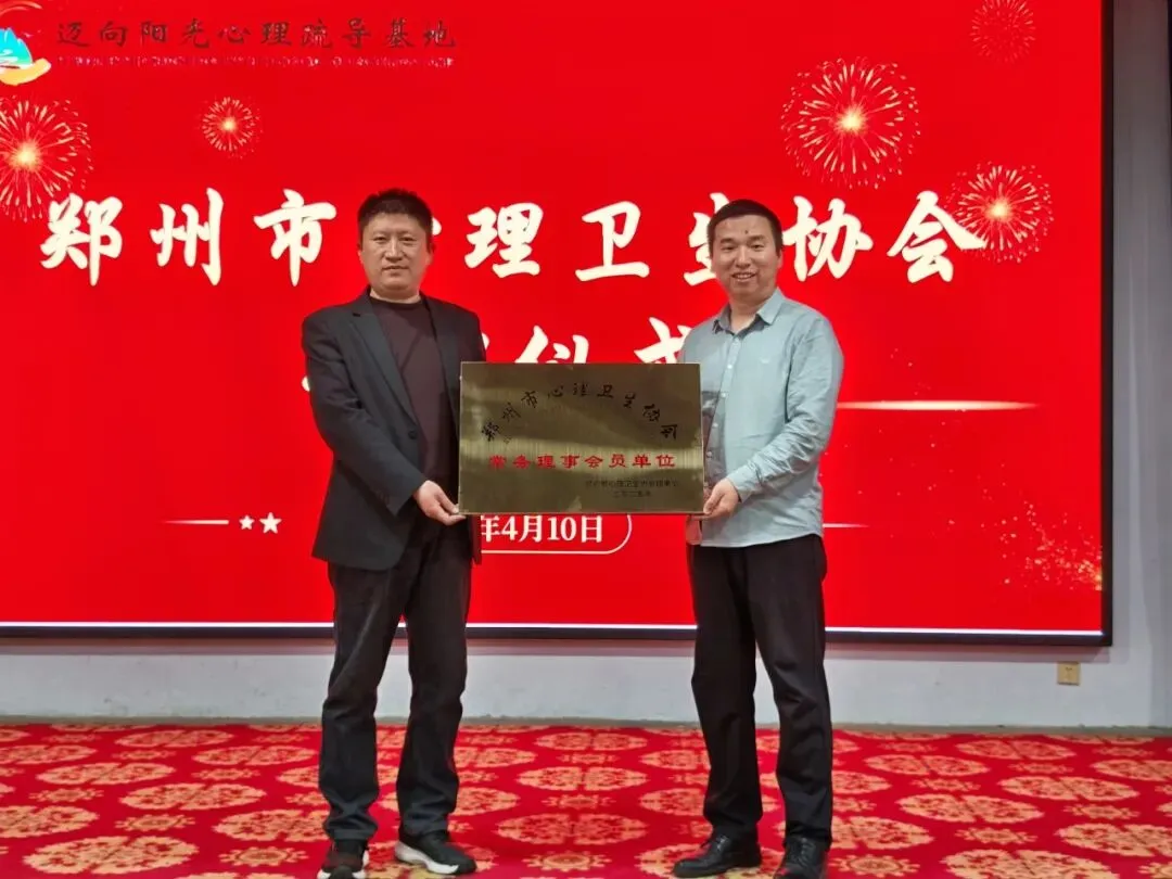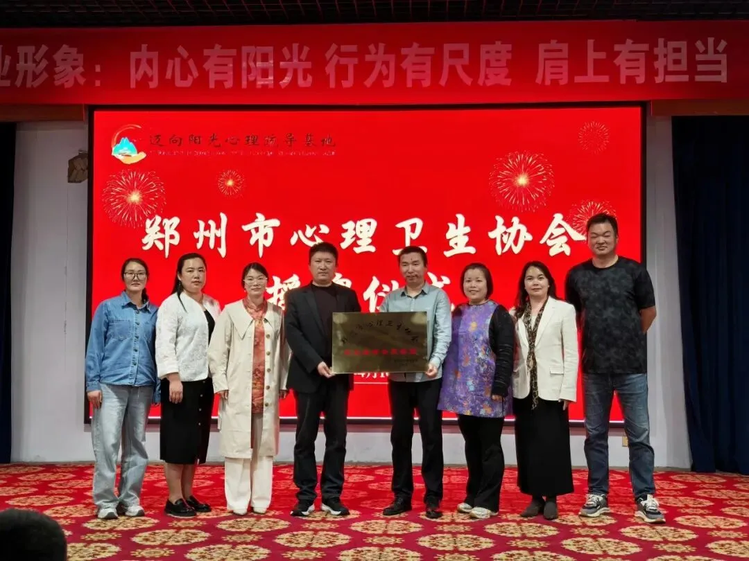 在全体教师与专家团队的共同见证下,刘一宏秘书长代表郑州市心理卫生协会,正式向我基地授予 “郑州市心理卫生协会常务理事会员单位” 牌匾。