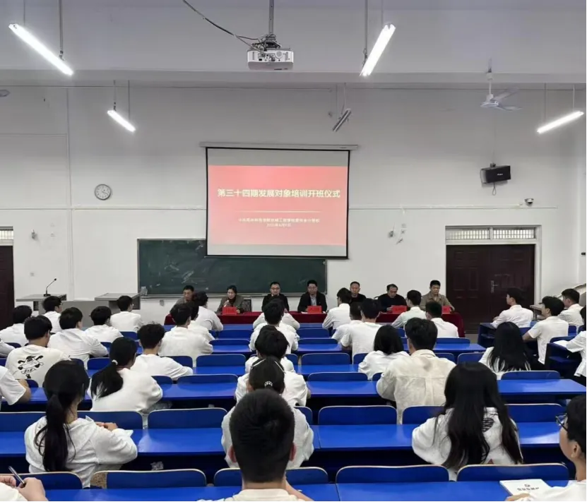 为深入贯彻新时代党的建设总要求和新时代党的组织路线,严把党员发展“入口关”“思想关”,加强发展对象思想政治教育,2026年4月9日,郑州科技学院机械工程学院第三十四期发展对象培训开班仪式隆重召开。学院组织委员王传花主持仪式,学院党委书记卢乙贵及相关委员、各支部书记出席,全体发展对象参加。