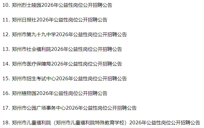 17. 郑州市公园广场事务中心2026年公益性岗位公开招聘公告