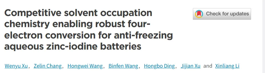 『锌碘电池』郑州大学 Energy & Environmental Science:竞争溶剂占据化学,实现稳健四电子转化与抗冻锌碘电池