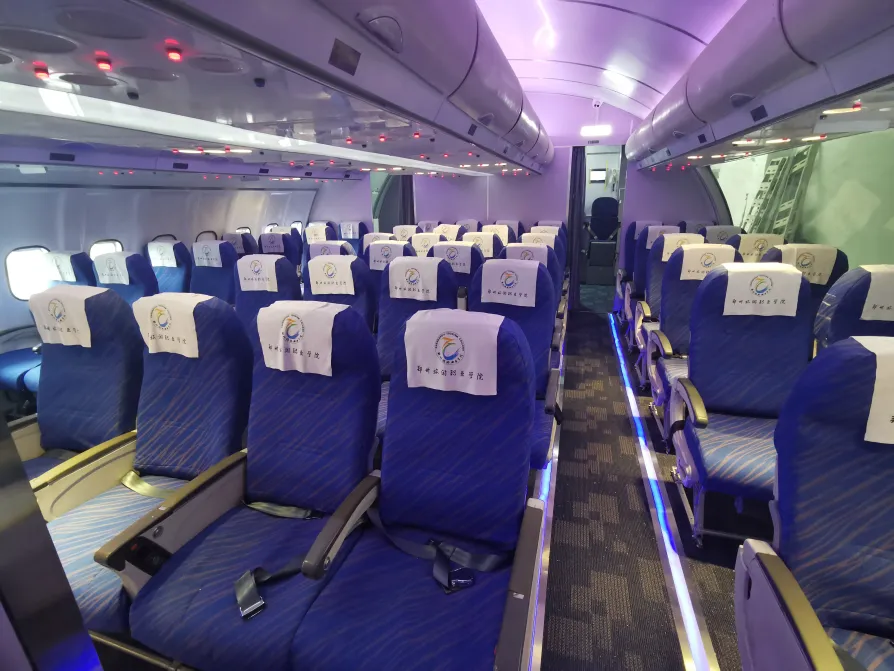 空中乘务专业实训室丰富多样,建有A330双通道模拟客舱、民航空港业务综合模拟中心、航空CBT系统实训室、动感双通道模拟客舱、航空礼仪实训室、形体舞蹈实训室、体能训练室、化妆展演实训室等9个实训室,总用房面积1200余平方米。