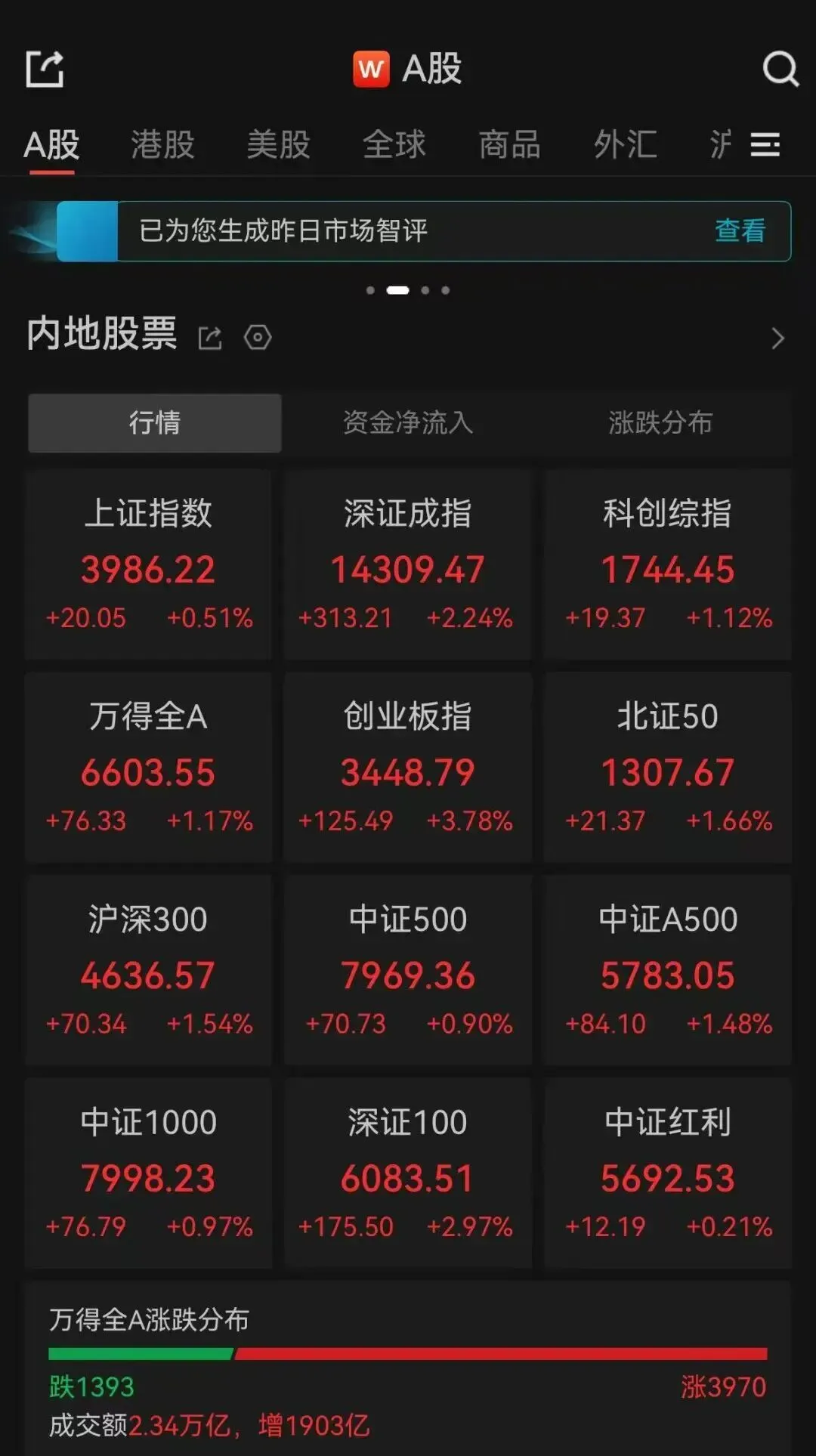 ⭐10日,A股三大指数集体高开,随后沪指冲高回落,4000点得而复失,创业板指盘中一度大涨超4%。截至下午收盘,沪指涨0.51%,深证成指涨2.24%,创业板指涨3.78%。