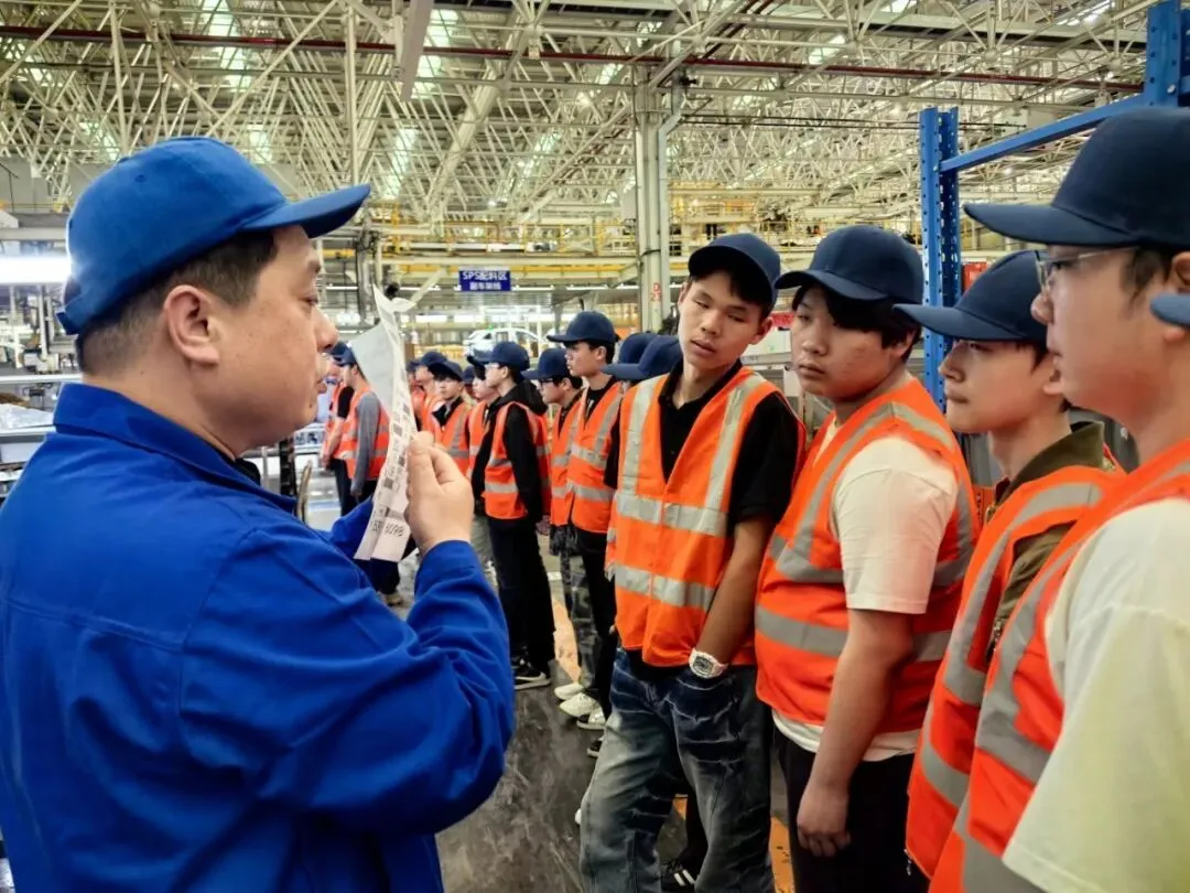 仪式结束后,企业人事经理叶月红向我校师生详细介绍了上汽郑州基地的发展概况、生产布局与核心车型。企业安全经理梁聪聪开展了车间安全与保密专项培训。在企业导师的带领下,师生们分批次走进总装车间,零距离观摩整车装配全流程,沉浸式感受汽车智能制造的先进工艺与标准化管理,将课堂知识与生产实践深度融合,为后续专业学习与职业规划奠定了坚实基础。