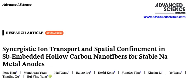 嵌Sb空心碳纳米纤维协同离子输运与空间限域而实现稳定钠金属负极