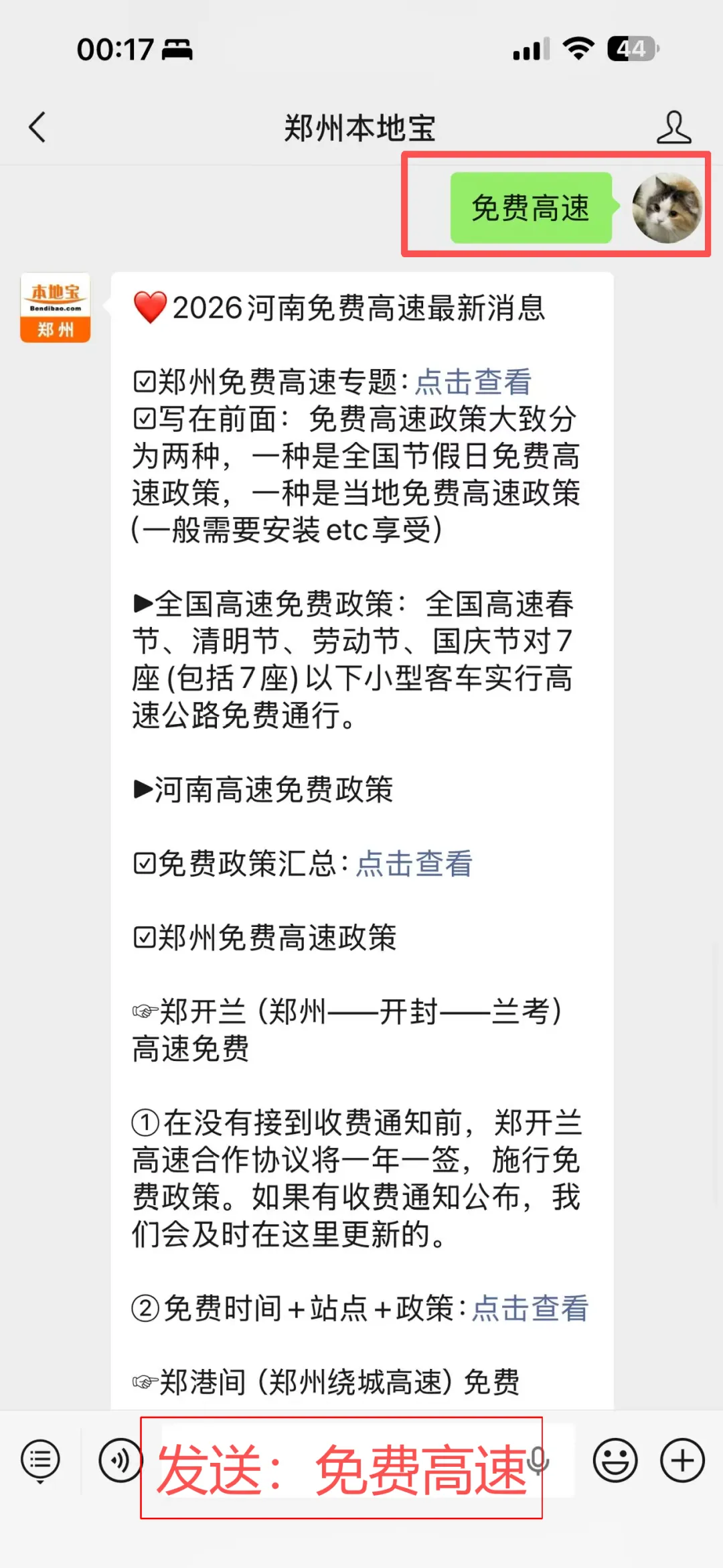 在聊天对话框回复【免费高速】获取