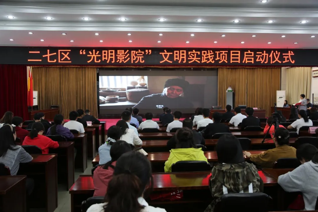 启动仪式上,董付行、高岩、毛学利、崔虎英四位领导共同上台,董付行副理事长郑重宣布:“二七区‘光明影院’文明实践项目正式启动!”现场掌声雷动,标志着二七区在文化助残领域迈出坚实一步。