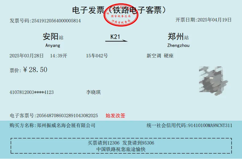 *车票/发票(纸质版图例)