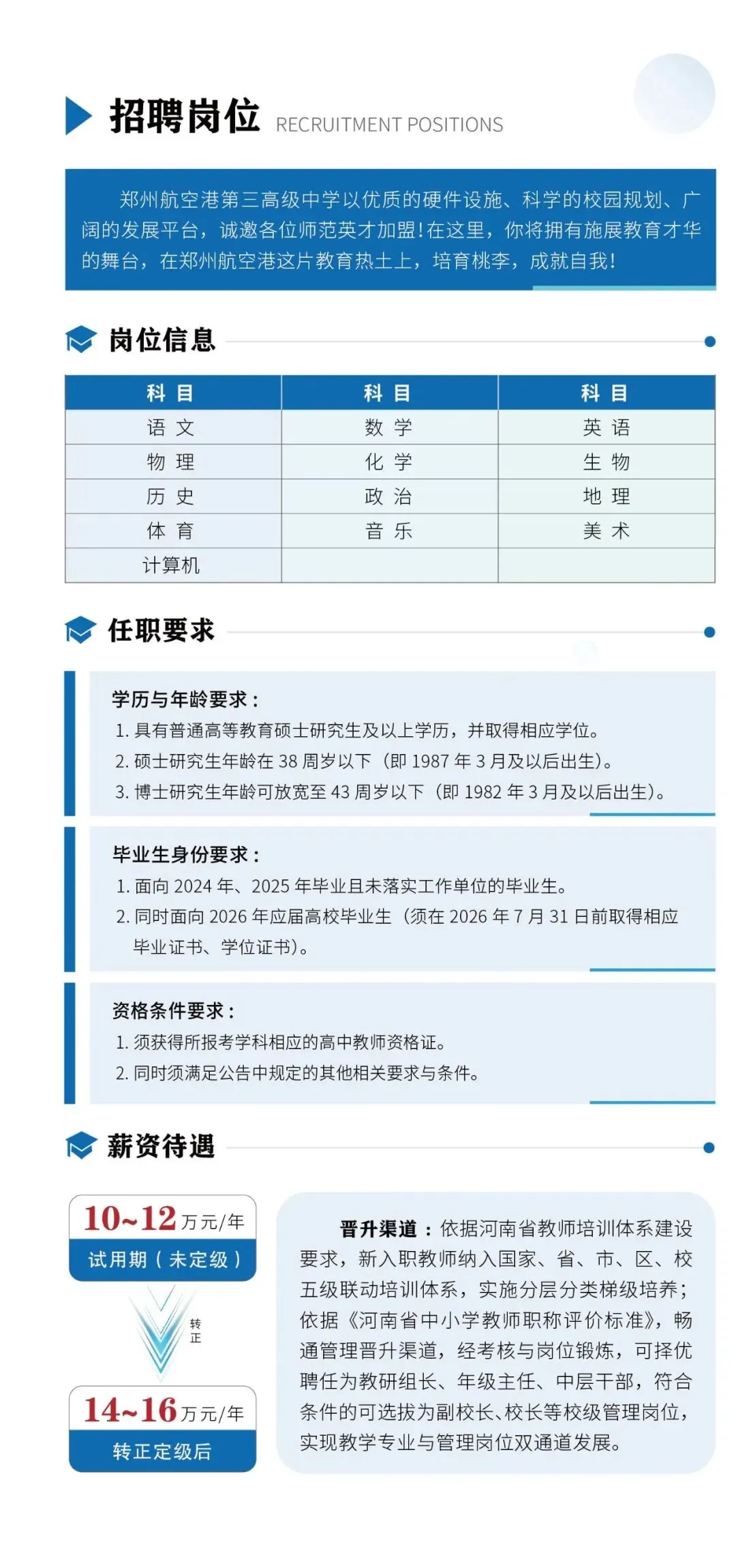 >郑州港区第三高级中学招聘简章(4月17日网上报名)