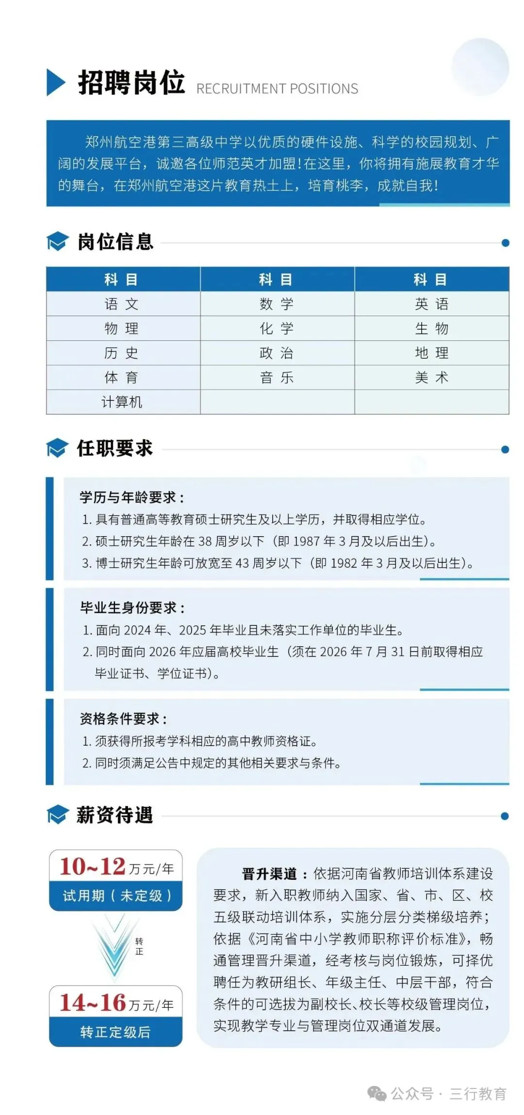 【郑州招教】郑州航空港经济综合实验区第三高级中学招聘简章(4月17日网上报名)