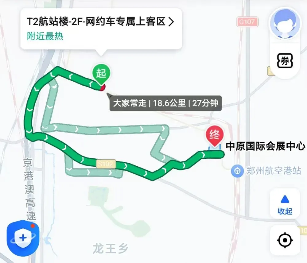 路线二:从郑州市区出发→经S1机场高速(或G4京港澳高速)→航空港区收费站→金陵大道→滨河东路→中原国际会展中心P1--P4停车场