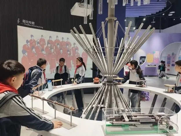 科学与艺术交融的奇妙乐园,处处充满惊喜。同学们在音乐互动墙前,用指尖敲响节奏,奏响科学旋律;透过传声筒探索声音的传播秘密;在光影与色彩装置前,专注观察视觉变幻。在互动中解锁声音振动与光学原理,拓宽科学视野,感受探索未知的无穷乐趣。