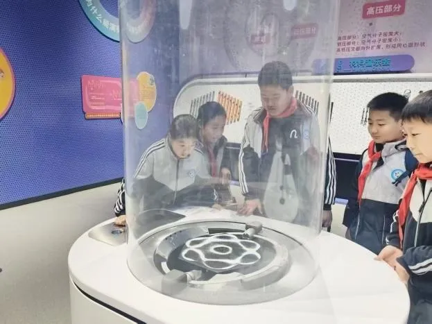 这里充满神奇魔力,深深吸引着每位同学。同学们脚踩发电自行车,亲身体验电能转化的过程;操作静电起电机与电磁装置,感受电流与磁力的神奇魅力。看着装置运转、灯光亮起,大家的好奇心被彻底点燃,在操作中探究电与磁的相关原理,感悟科学与日常生活的紧密联系,激发对能源科学的探索热情。