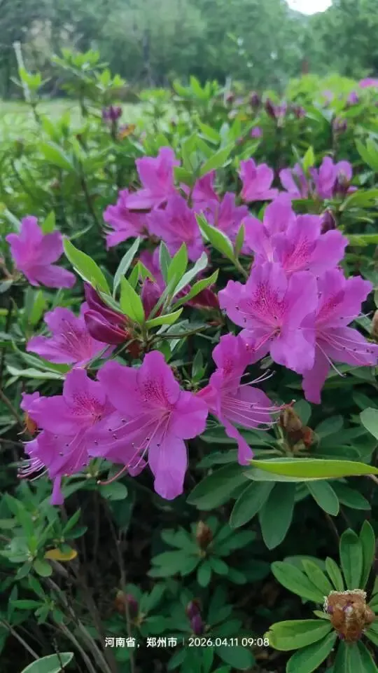 公园里的春光远不止于此,杜鹃花热烈绽放,一簇簇,艳红似火,明媚耀眼,将公园点缀得格外绚烂;金银木也恰逢花期,细碎的花朵缀满枝头,清新淡雅,与浓烈的杜鹃、温婉的木香相映成趣。各色花儿错落绽放,各有风姿,河水潺潺,柳丝依依,花香阵阵,全然是最美人间四月天的模样。