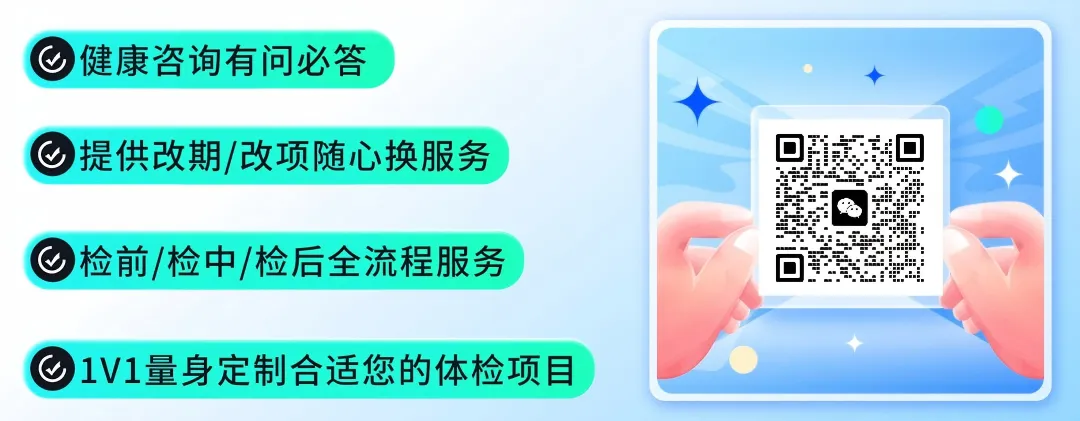 别担心!在您下单前,我们的专业健康检前客服将化身您的“专属体检规划师”,通过一对一沟通,确保您选择的每一项检查都精准契合您的需求。