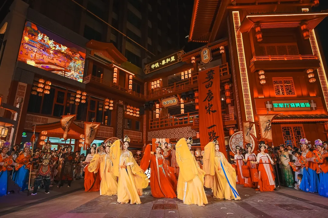 而“唐宋梦华”街区则呈现出另一番景象,飞檐斗拱、酒旗飘扬,身着古装的演员在街区中穿梭,琵琶声、欢笑声交织在一起,让人仿佛穿越到了唐宋时期的繁华市井。在这里,游客可以品尝到各种传统美食,欣赏到精美的手工艺品,领略到唐宋文化的独特魅力。