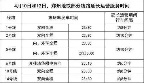 郑州地铁根据活动客流特点,科学调整行车组织,对线网运能进行优化配置。4月10日、11日、12日,线网部分线路将延长运营服务时间,精准保障乘客出行需求。