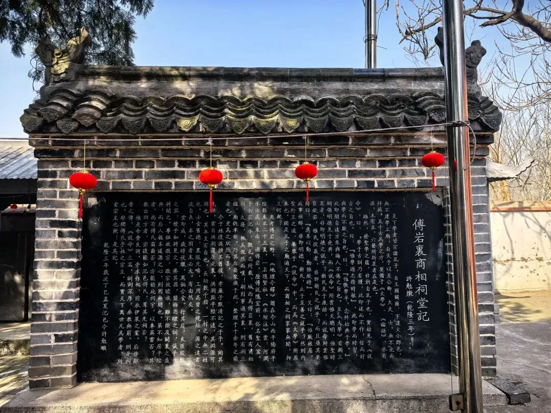 3.祠内核心:除大门外,祠内还保存有《尚书·说命》碑刻、清代《崇俭约》碑、傅说塑像等,是中原家风文化、殷商历史的重要实物遗存。车刚停稳,远远就看见这座气派的石牌坊,这就是商相祠的入口了。