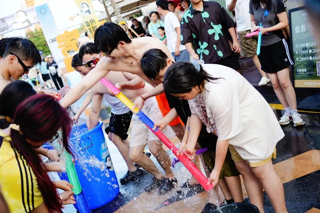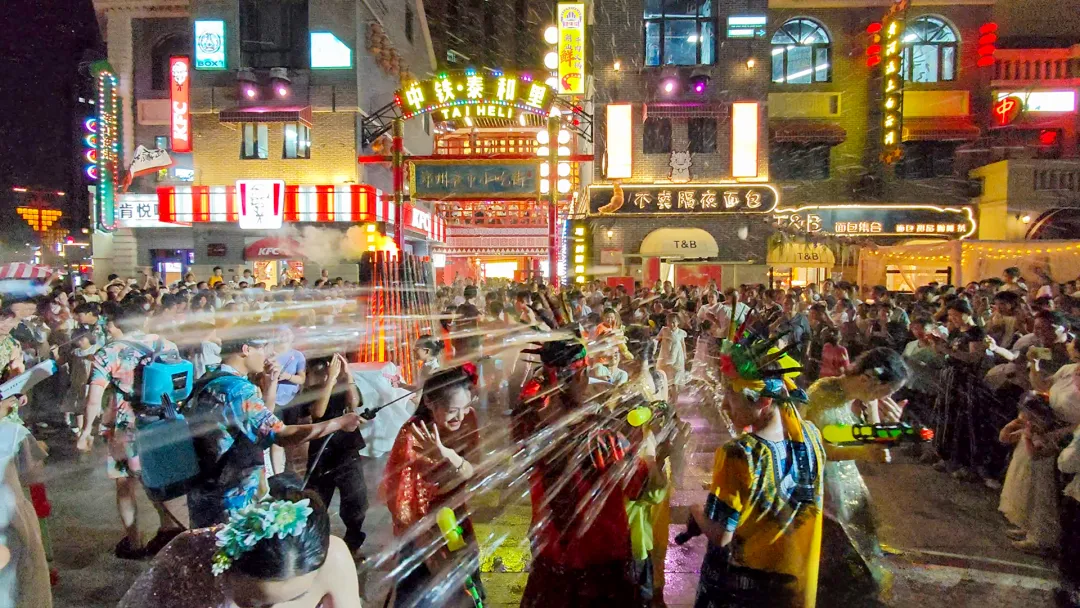 作为河南首个沉浸式文商旅夜经济综合体,中铁·泰和里街区巧妙融合不同时代的建筑风貌与现代互动玩法,打造“一步一景、一景一戏”的沉浸式消费场景。夏日特别推出的“花漾泼水狂欢”等一系列清凉一夏主题活动,为炎炎夏日注入清新活力。
