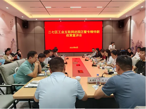 8月14日下午,郑州市二七区工业互联网进园区暨专精特新政策宣讲会顺利举行,这也是“二七帮易企办”营商大讲堂的第八期活动。本次活动由区工信局局长连少华主持,辖区领航机器人、华都柜业、泛物云盒、华中食品等40余家工业企业、专精特新和创新型企业负责人、多方专家及营商环境体验官齐聚现场,区领导刘光远出席活动并致辞,为活动拉开序幕。