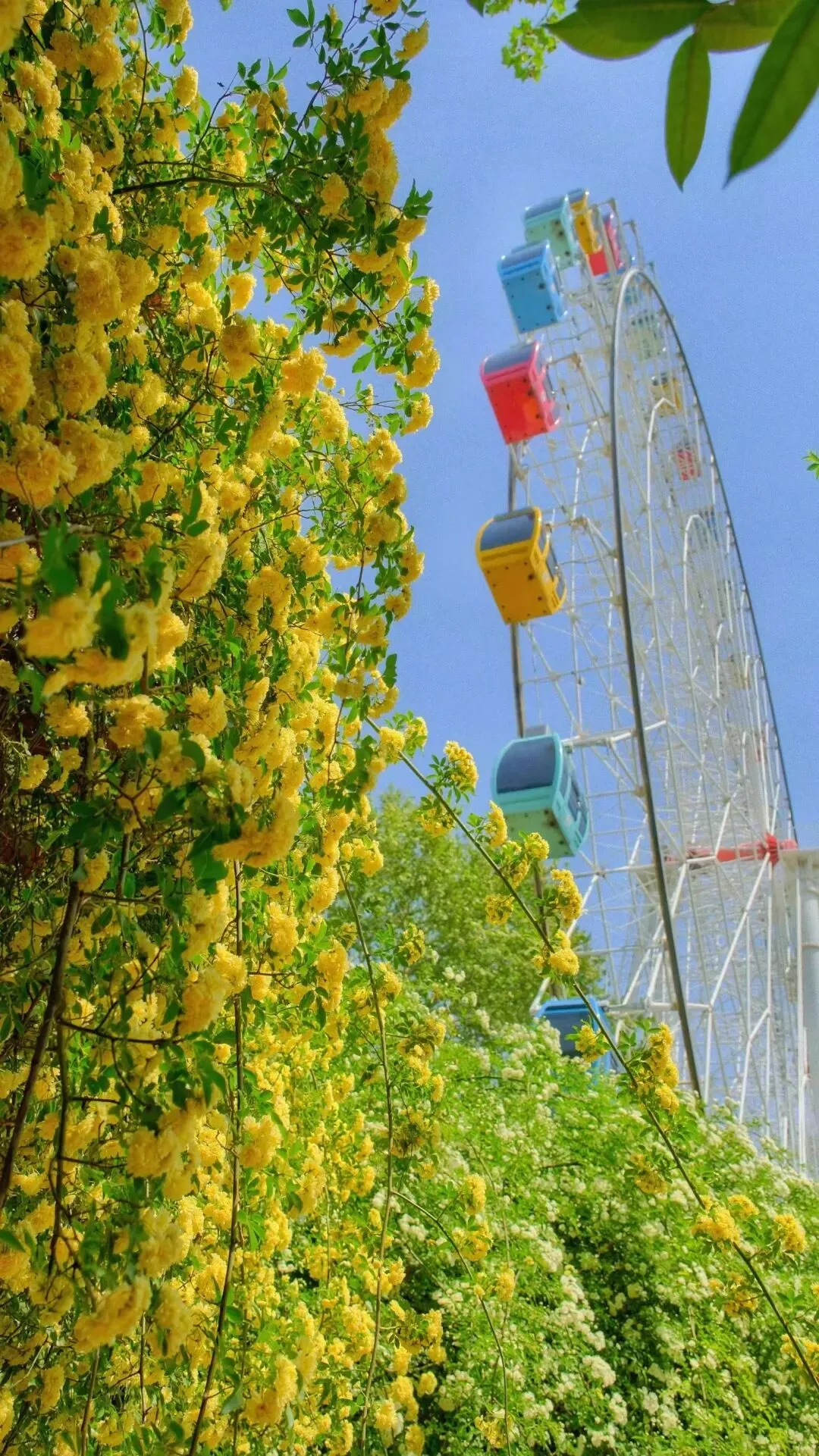 碧沙岗的木香花还在开,摩天轮还在转,春天还在继续。而你,只需带着一颗轻盈的心,走进这童话般的画面里,让金黄的花瀑洗去烦恼,让彩色的梦想随风升起——因为,你本就是自己生命中最温柔的主角。