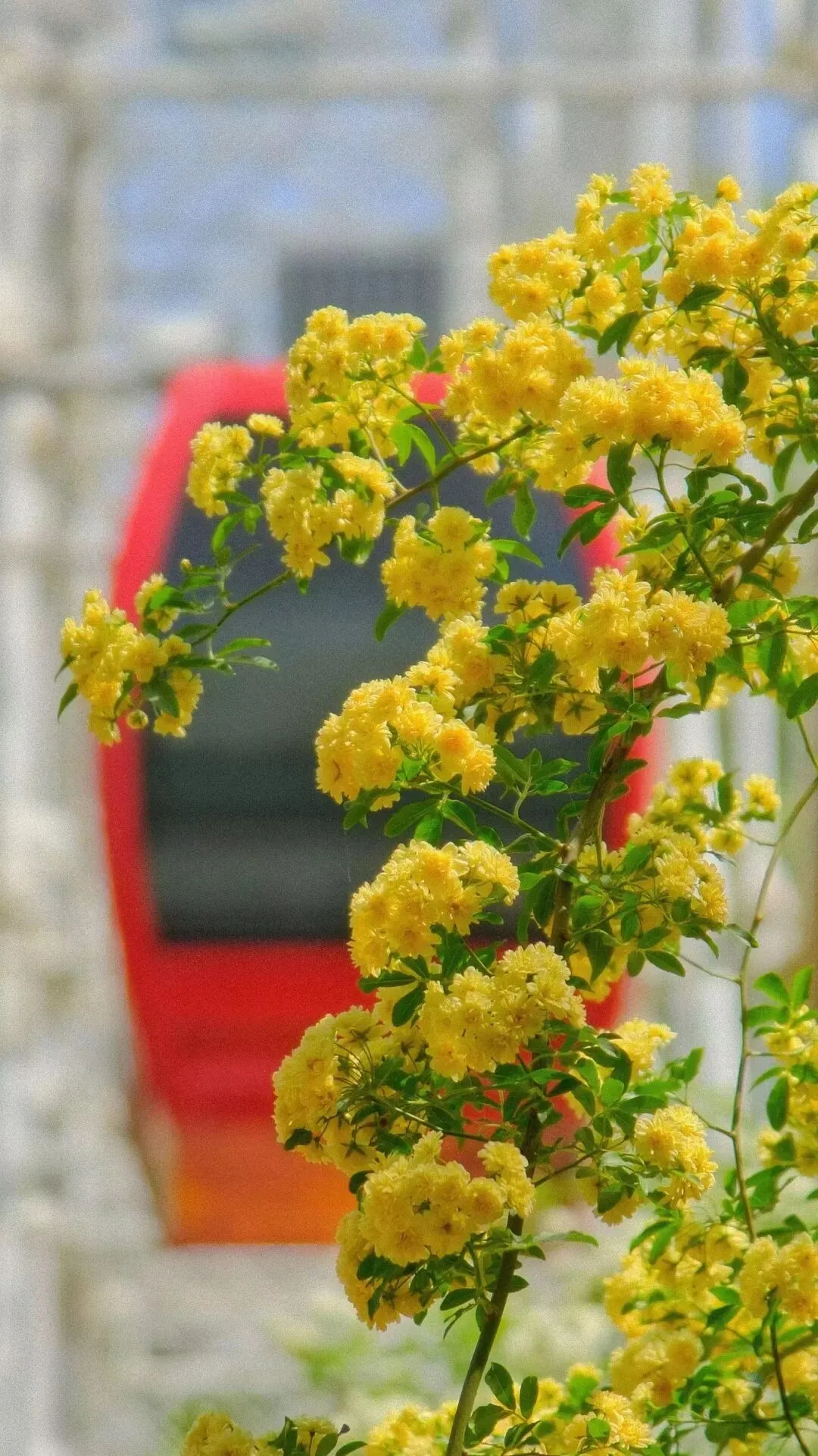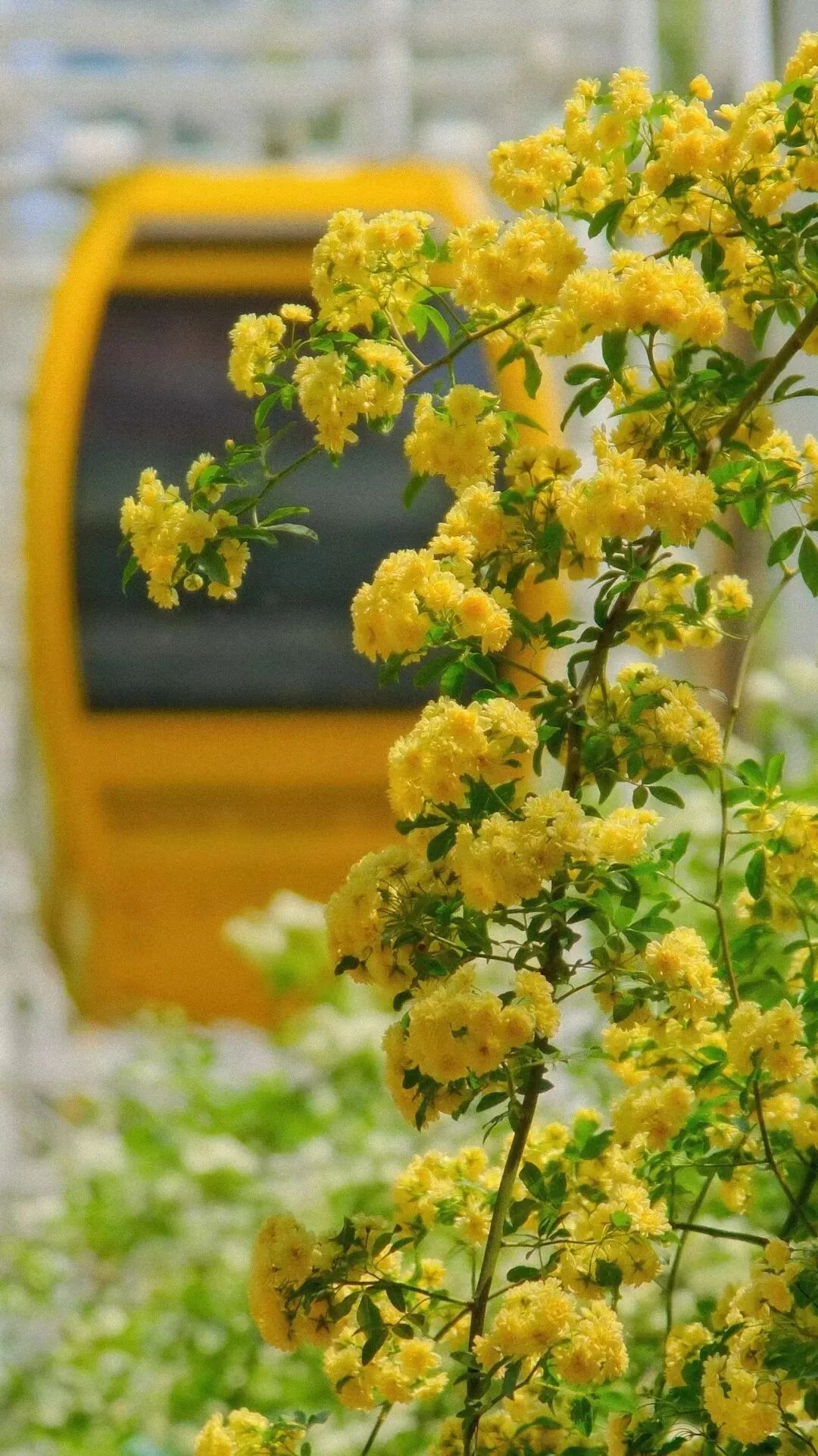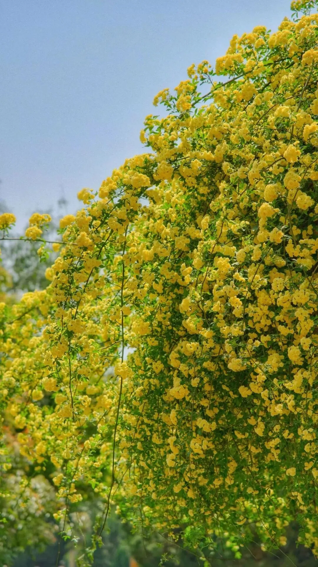 那是木香花,细小却倔强,成簇绽放,不争不抢,却用最温柔的力量,把整个公园染成了金色的梦境。