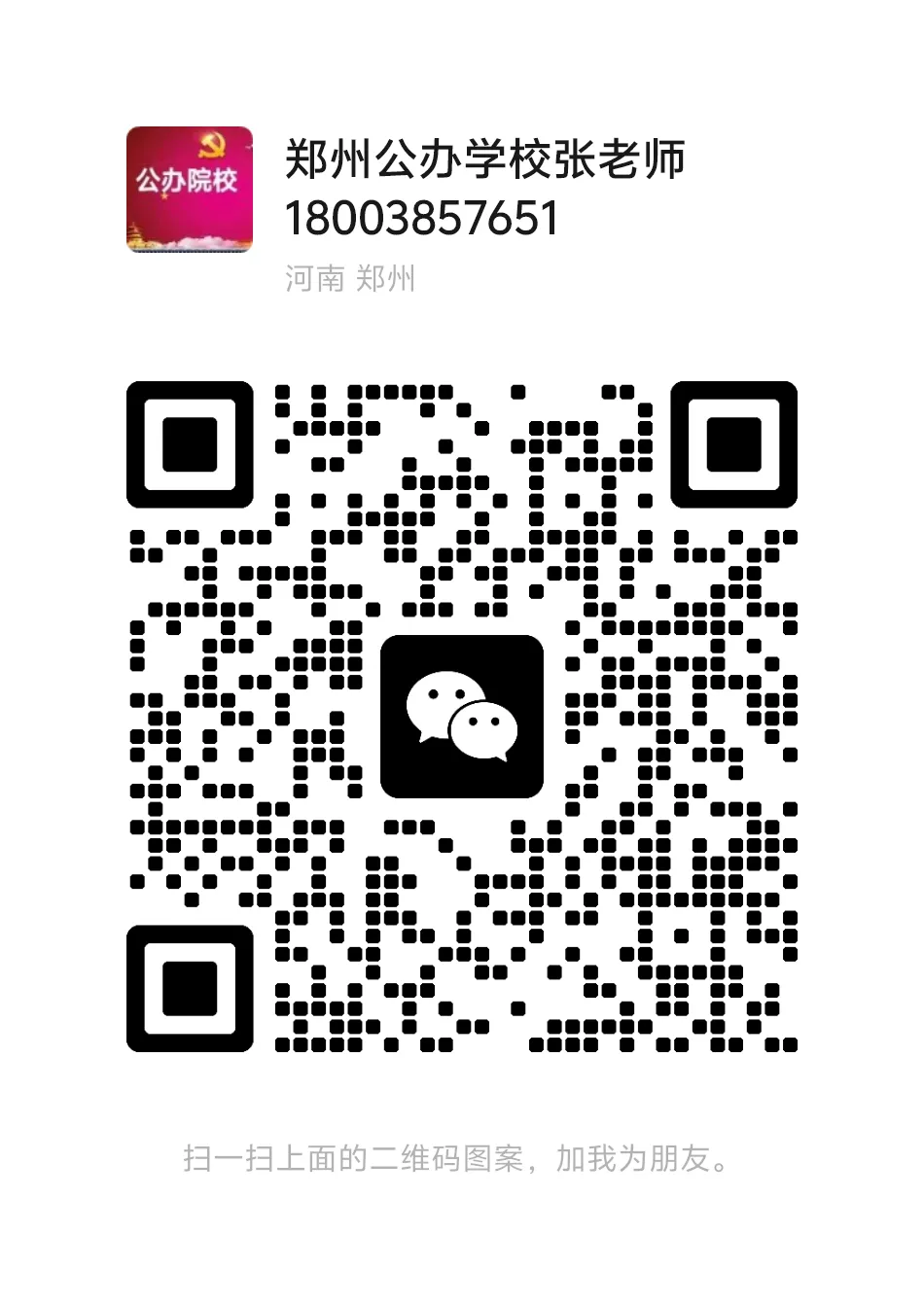 扫上面二维码加张老师,领取高清招生简章,免费一对一咨询