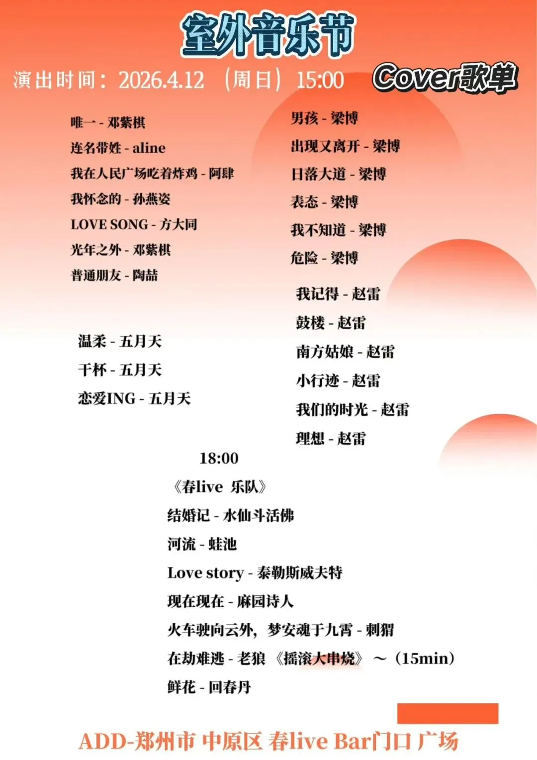 郑州室外音乐节来啦 明天下午见