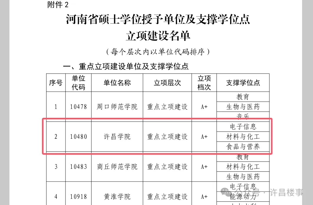 当前,新一轮的申硕准备已经开始,2025年初,河南省教育厅、河南省发展和改革委员会、河南省科学技术厅、河南省工业和信息化厅、河南省财政厅等多部门联合印发了《关于公布河南省博士硕士学位授予单位和学位授权点立项建设名单的通知》(教研[2025]20号),许昌学院和中原科技学院分别获批河南省硕士学位授予单位重点立项建设单位和一般立项培育单位,在重点立项建设单位中,许昌学院位列第二,当然,高校排序也并不一定会是最终推荐时的排序,毕竟在下一轮省厅推荐之前谁都不知道还会有什么变数。关于支撑学位点方面,许昌学院2025年涉及的三个学位点依然是材料与化工、电子信息、食品与营养,这与2023年申硕时的三个学位点倒是没有太多调整,而这三个专业其实也是许昌学院的传统优势专业,也是这几年发展势头比较好的专业,与许昌市整体的产业发展匹配度也相对较高。因此,长期在郑州大学化工学院工作的王景涛院长,可以说在化工领域有着非常深厚的功底与资源,其调任许昌学院是否能够助力许昌学院在这一轮申硕中取得更多突破,值得期待。其次便是学科建设与平台拓展了。这两点同样十分重要,要知道,“双一流”高校的资源和基础是绝大多数普通本科院校难以企及的,放眼省内,也就郑大、河大算是独一档了,而且说句实话,河大虽然也是“双一流”高校,但相较于郑大,其实还是有某种说不出来的“差距”,或许是相关方面大力支持的时间确实有些晚吧,要知道,当年河大百年校庆的出席嘉宾还是非常“顶”的。总的来看,王景涛院长曾深度参与郑州大学化工有关学科的建设,在某种程度上确实能将其“双一流”高校的经验与资源引入许昌学院,进一步提升许昌学院相关学科的“硬指标”与“软实力”。最后其实没啥可说的了,许昌学院的申硕工作,推进的时间够久了,基础也夯的够实了,只希望能在新一轮申硕中取得成功,至于新校区建设和更名两件事情,目前来看,都没有申硕急迫。备注:文中内容/位置仅供参考,一切信息请以官方公示为准,出文随机,暂不接受任何指定和委托,转载或引用请注明出处。