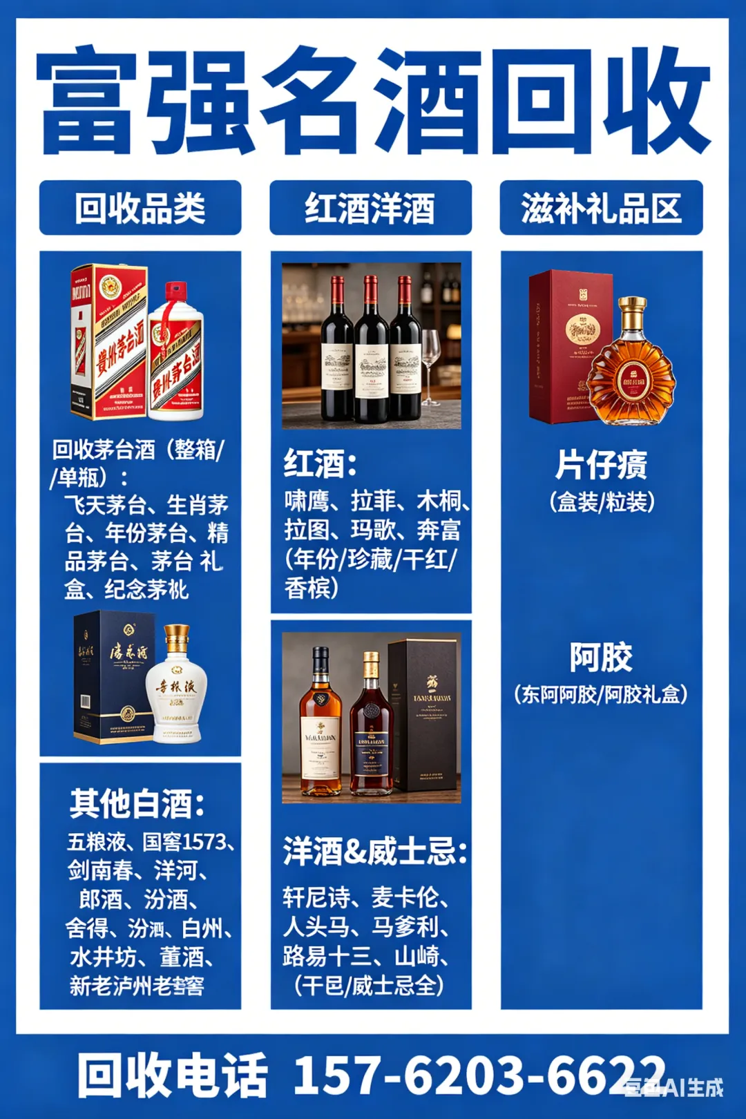 1. 飞天茅台:回收各年份、各规格飞天茅台,涵盖散瓶、原箱,无论是近年新款还是经典老款,均按实时市场行情精准估价,酒线饱满、包装完好者报价更具优势,全程透明无压价。