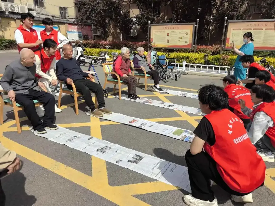活动伊始,安全防护组便提前勘察户外场地,仔细检查活动器材,全程守护长者行动安全;文化活动组则精心布置活动区域,耐心讲解规则,调动长者参与热情;护理见习组在旁协助,随时关注长者身体状态,用专业知识为活动保驾护航。