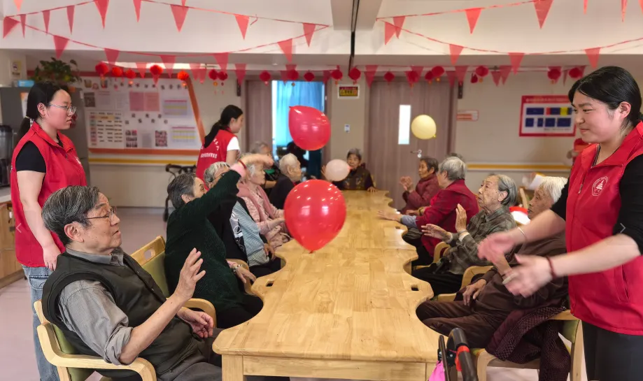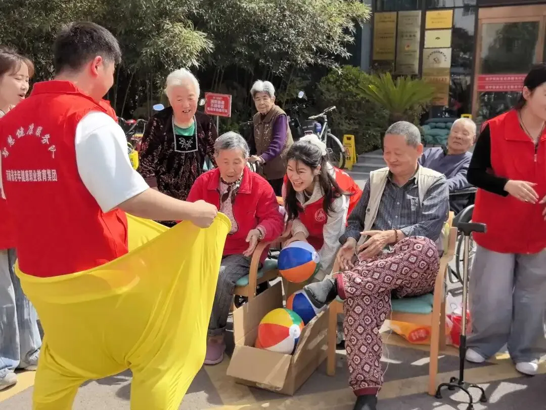 一场别开生面的“长者趣味运动会”在户外活动区热闹开场。在安全防护组的悉心保障下,老人们积极参与,欢声笑语不断。“无敌风火轮”活动中,老人们齐心协力,用旧报纸卷成“履带”,体验团队协作的乐趣;“投球大作战”则考验了老人们的反应能力和身体协调性,现场加油声、喝彩声此起彼伏,气氛热烈非凡。