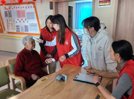 午后,是学习与沉淀的时光。护理见习组的同学在专业护理老师的指导下,认真学习了生命体征测量的规范操作。在老人们午休后,同学们将所学知识付诸实践,在老师的带教下,小心翼翼地为长者测量血压、体温等,态度认真,操作严谨。这不仅锻炼了他们的专业技能,也让他们深刻体会到护理工作的细致与责任。