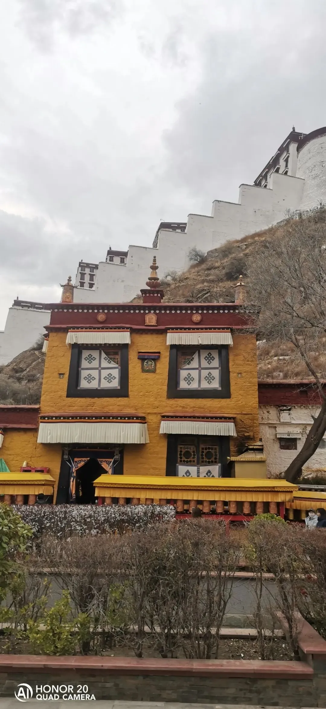 【情感视角大意】终于朝着布达拉宫走去。绕着它缓缓转圈,抬头瞻仰,那红白相间的宫墙依着山势层层叠叠,每一道痕迹都在诉说着岁月的沧桑与辉煌。站在这里,人会不自觉地变小,心却变得很安静。