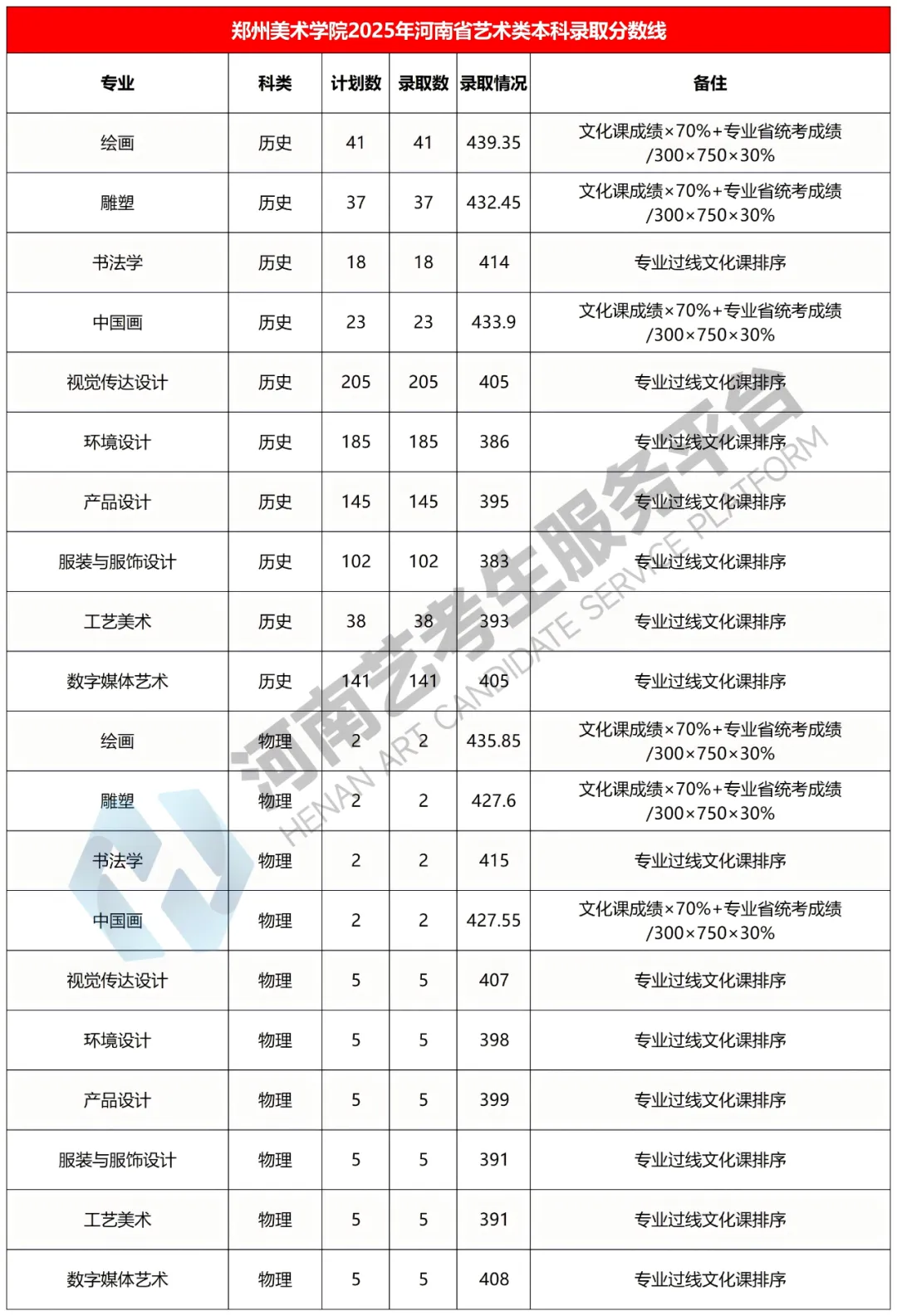 郑州美术学院2025年河南省艺术类本科录取分数线